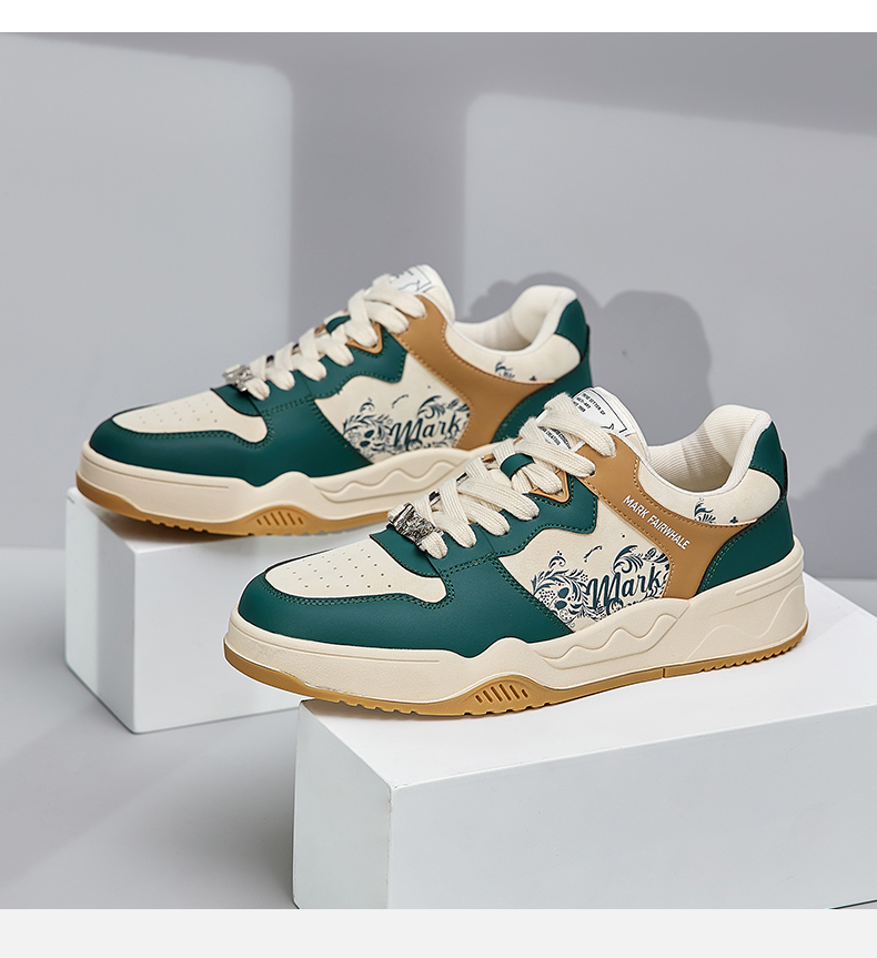 Mark Huafei Genuine Leather Sneakers Autum Height Increasing Shoes 2025 New Trendy Shoes Men's Sports Casual Shoes Breathable Men's Shoes