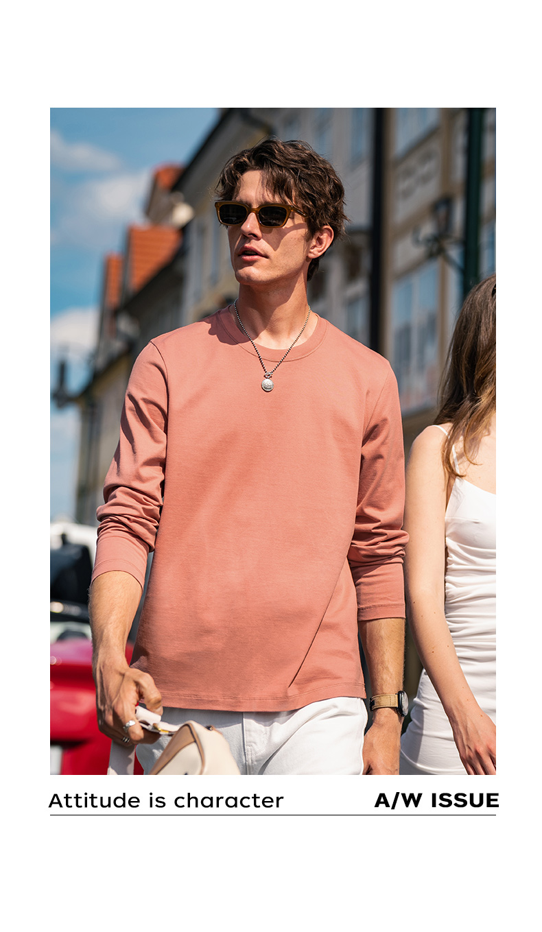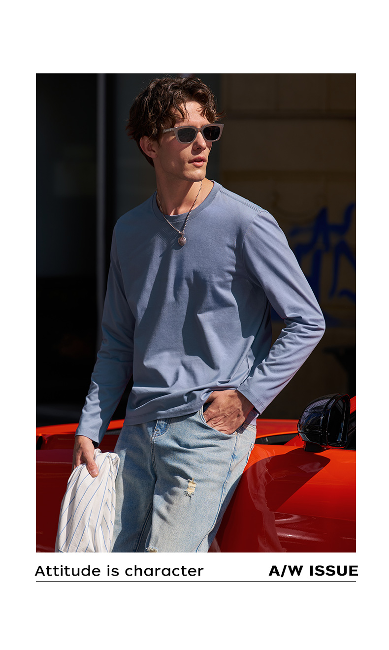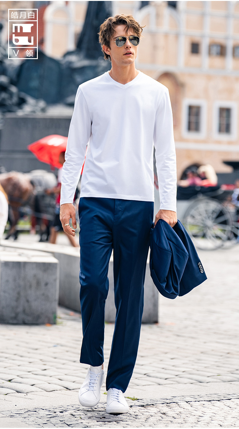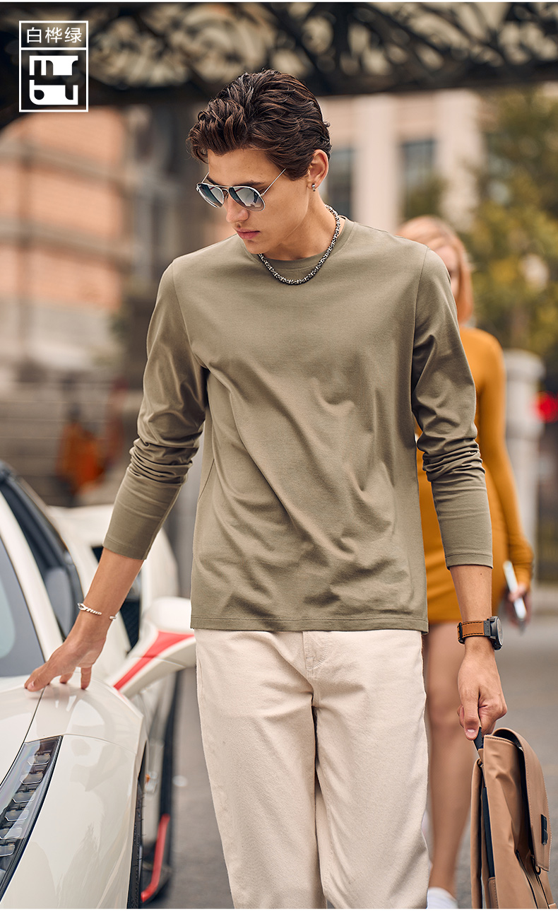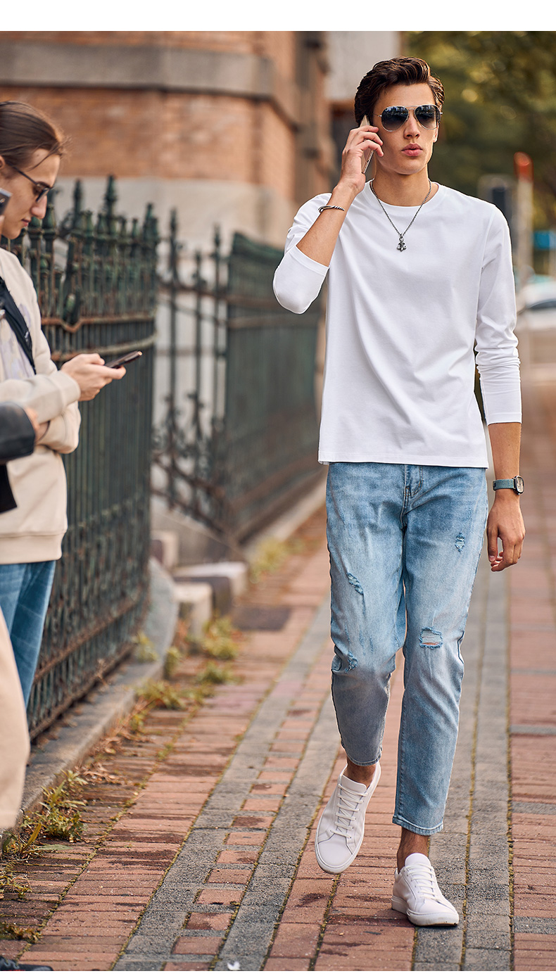 Star with Mr. MrBu cloth long staple cotton white Long sleeves T-Shirt Men Casual Spring & Fall base pure cotton with T