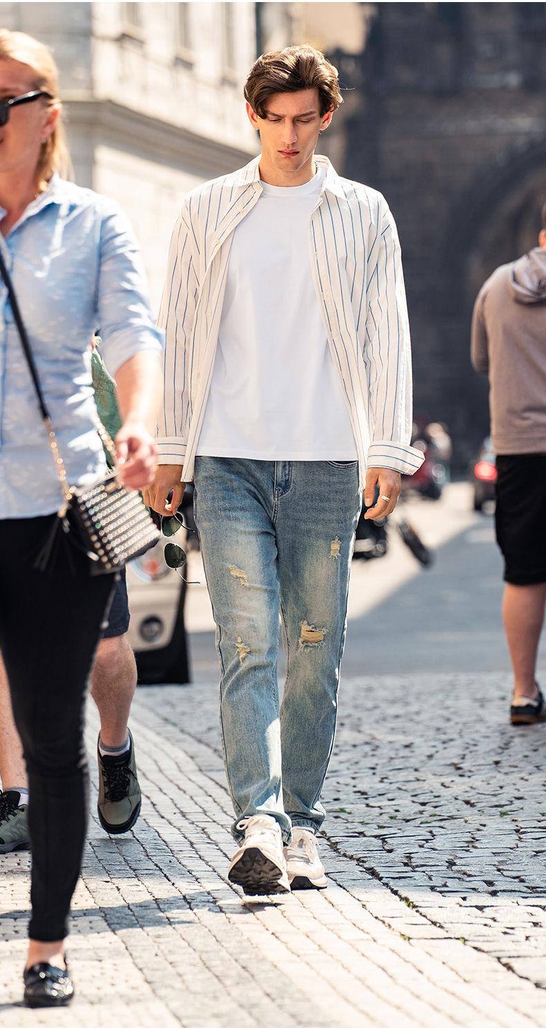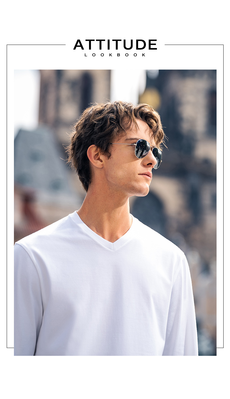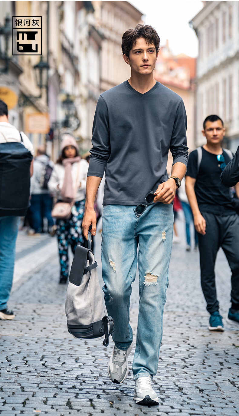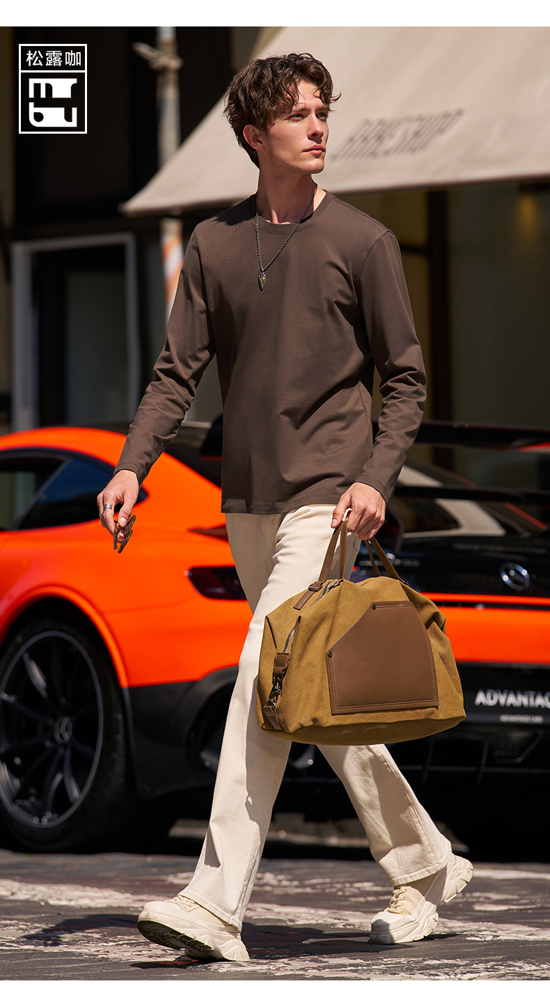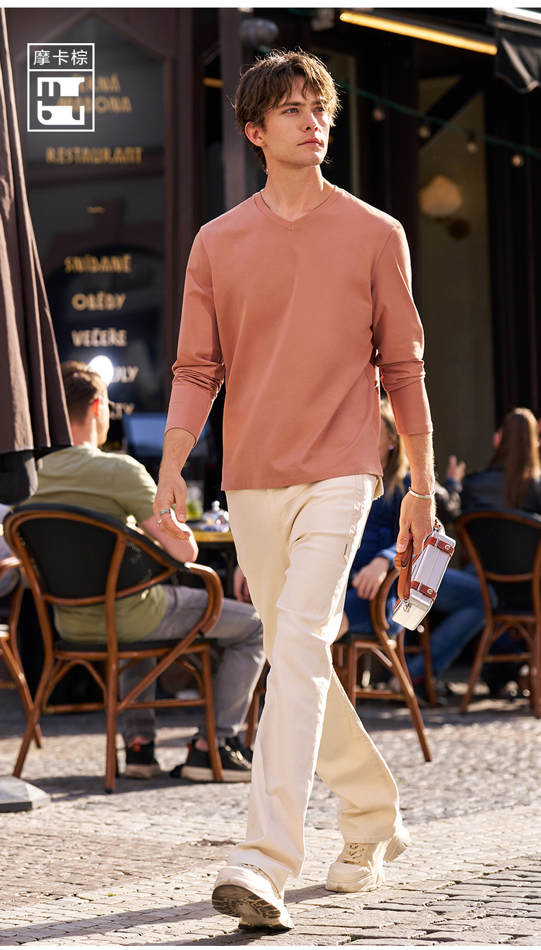 Star with Mr. MrBu cloth long staple cotton white Long sleeves T-Shirt Men Casual Spring & Fall base pure cotton with T