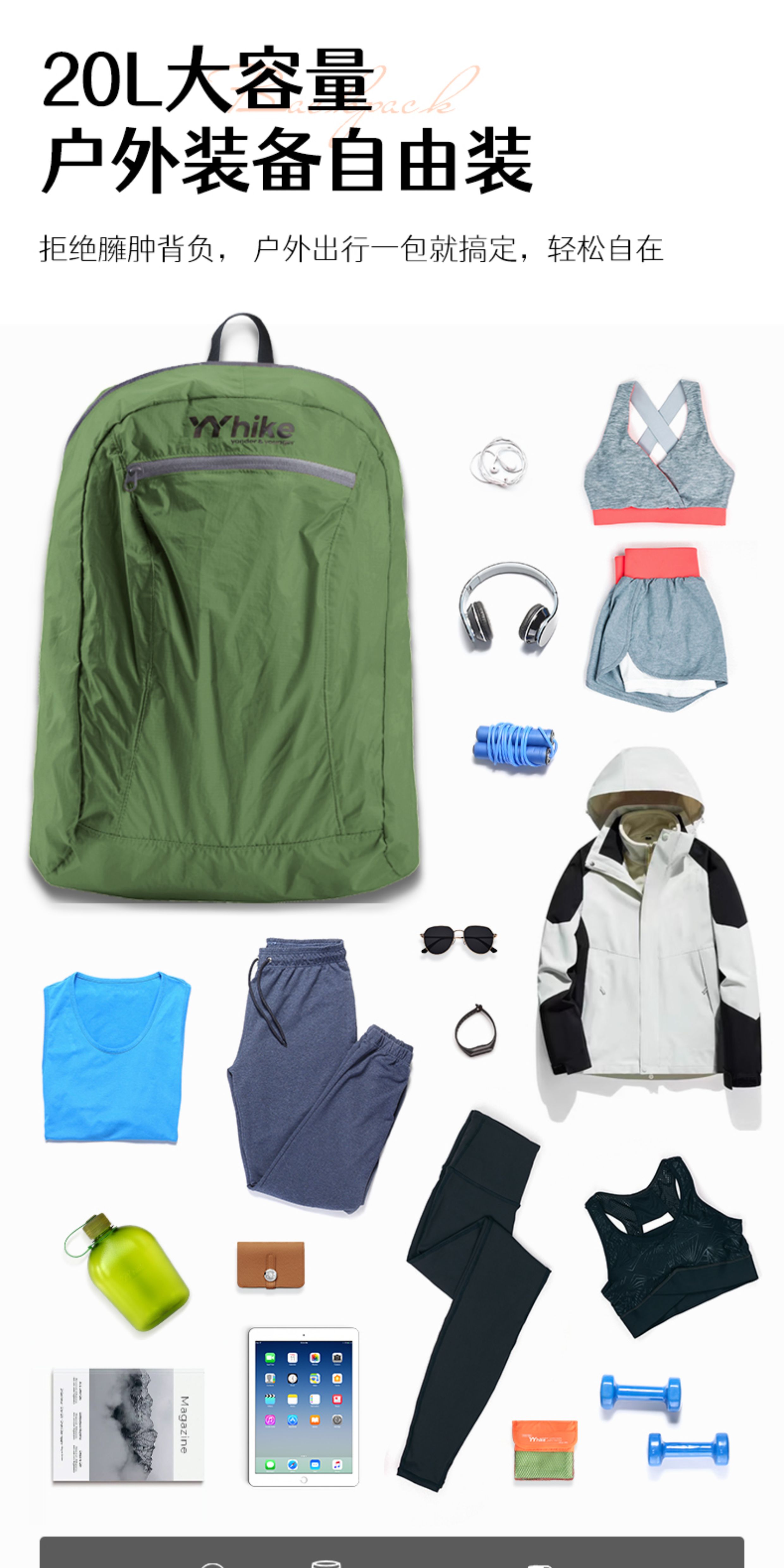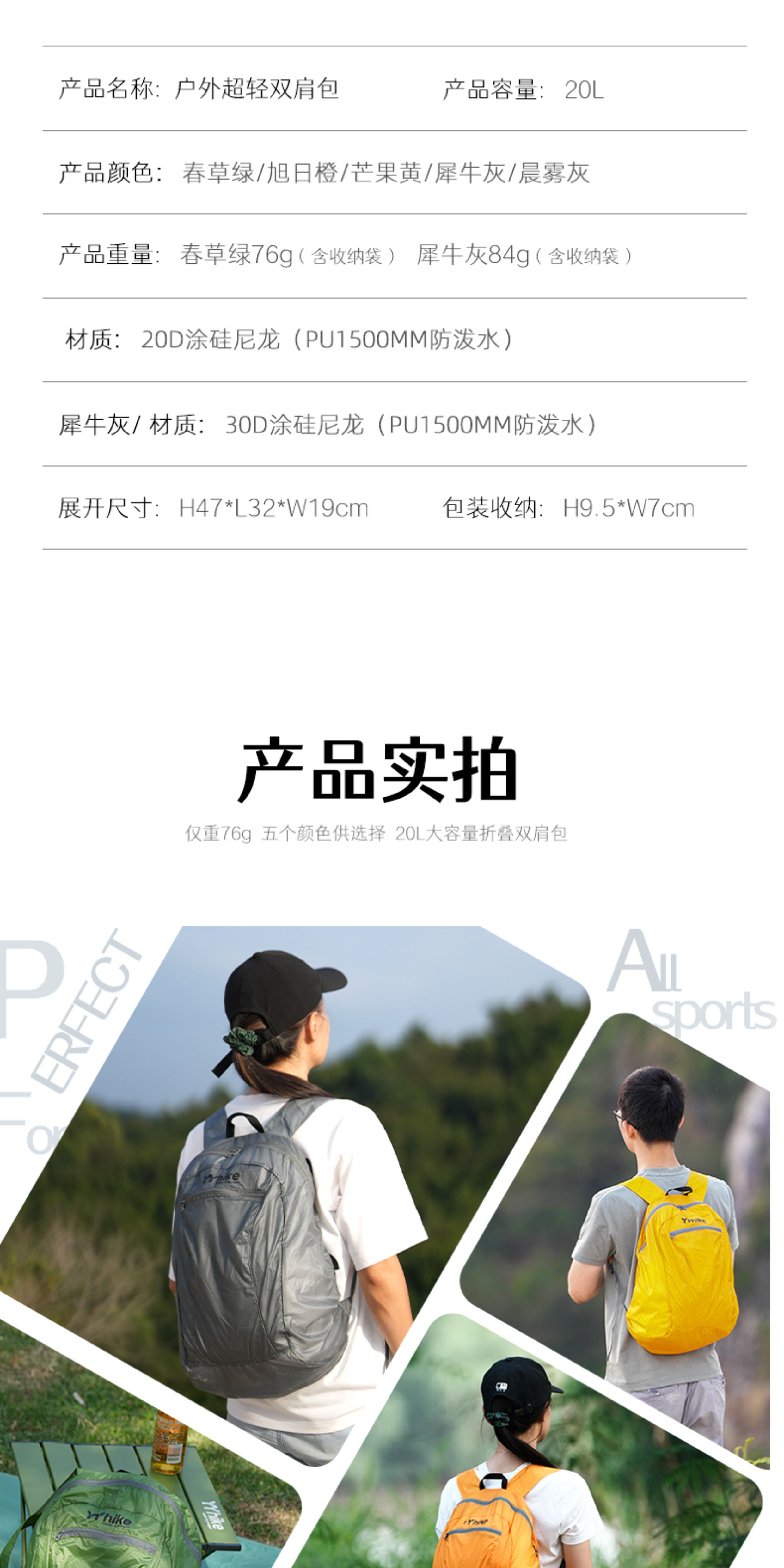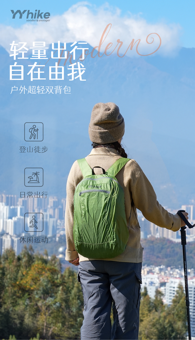 Yyhike Portable Backpack Ultra-Light Travel Lightweight Mountaineering Bag Skin Bag Waterproof Foldableable Backpack for Men and Women