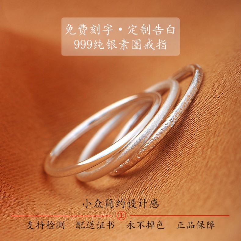 Silver tail ring smooth thin ring ring men's and women's s999 sterling silver third life Third Life index finger pinkie trendy cold wind
