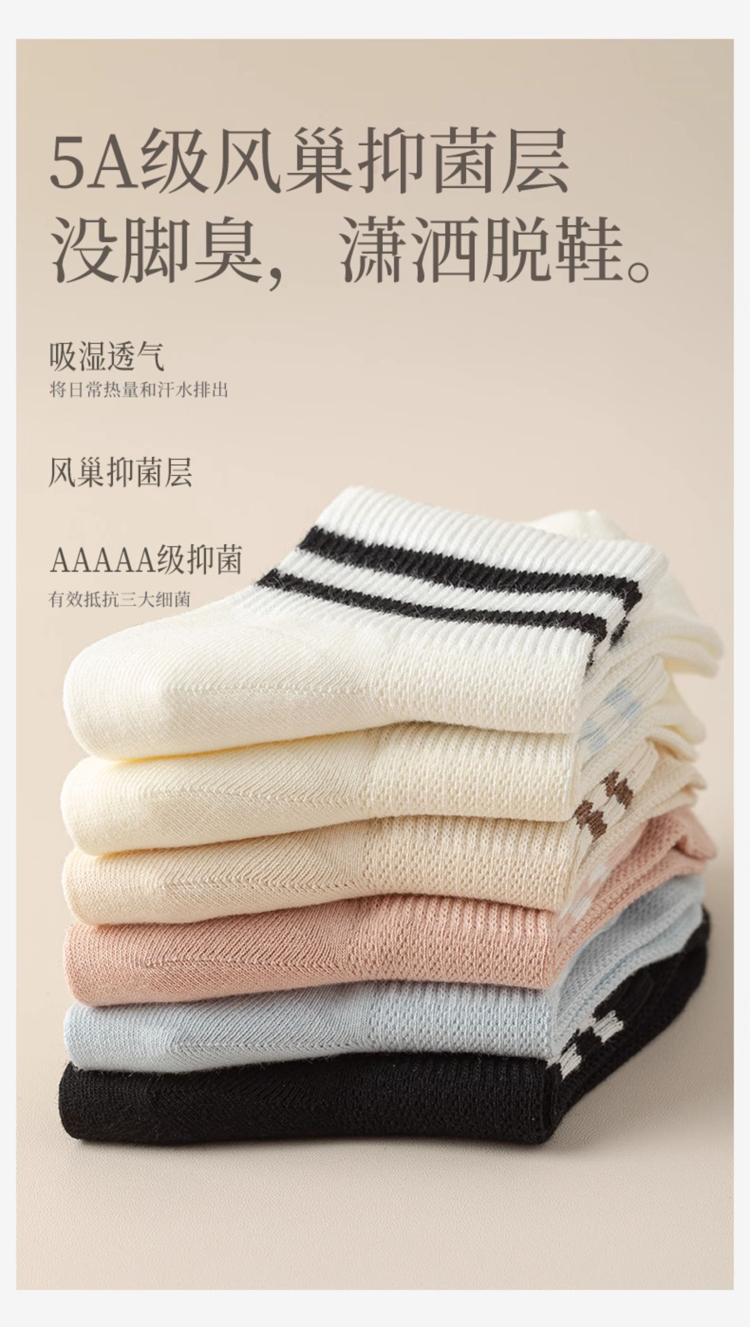 Pure Cotton Socks for Women, Spring, Summer, and Autumn 2025 New Popular Style, Anti-Odor, Antibacterial, Breathable Sports Short Socks, White Socks for Women