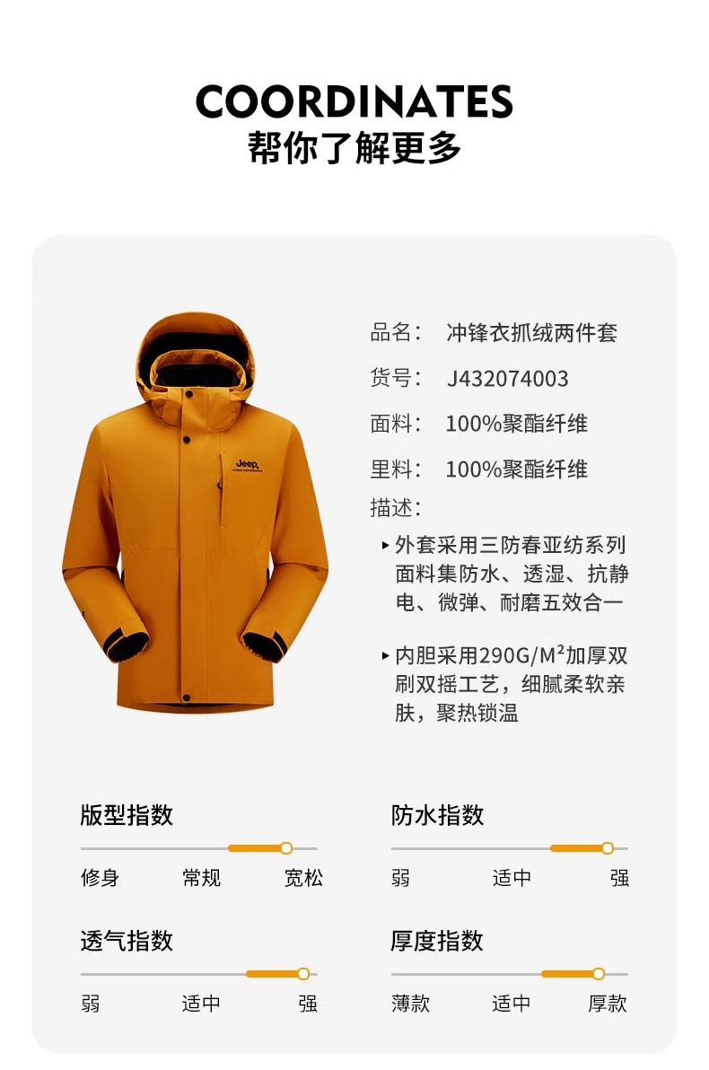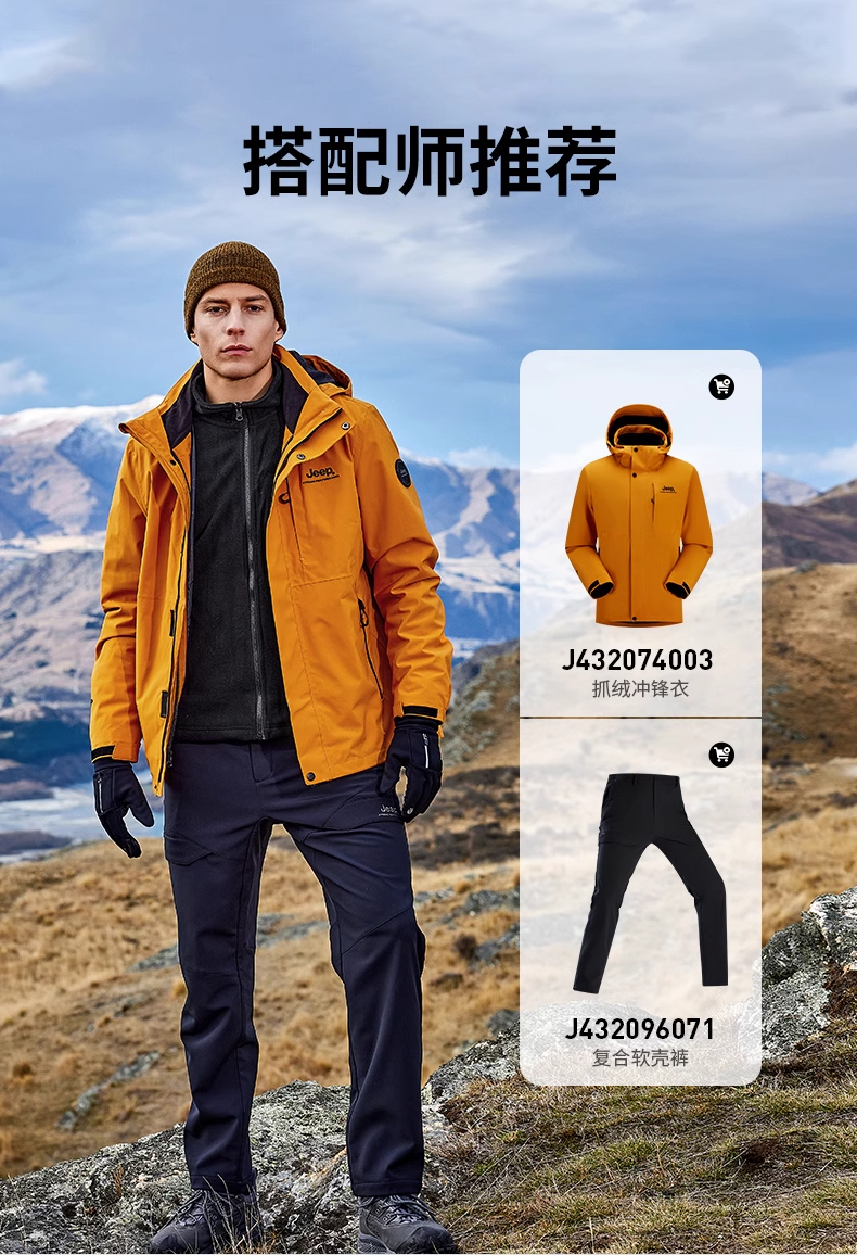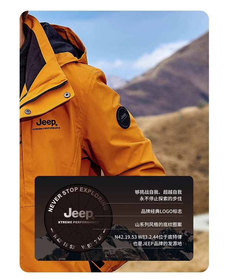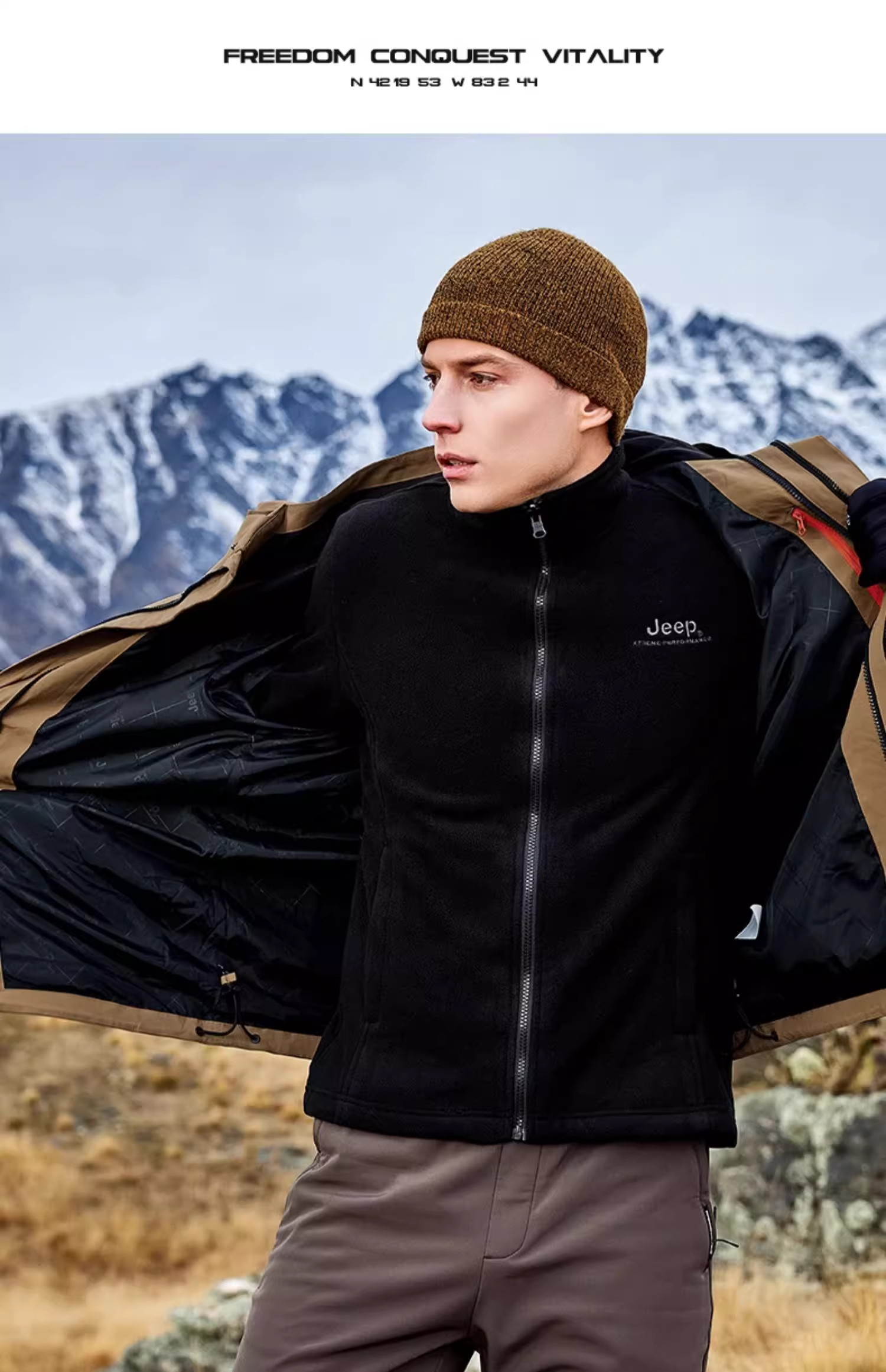 Jeep's Official Flagship Outdoor Green Jacket, Men's Windproof and Waterproof Jacket, Women's Couple Style Three-In-One Mountaineering Jacket