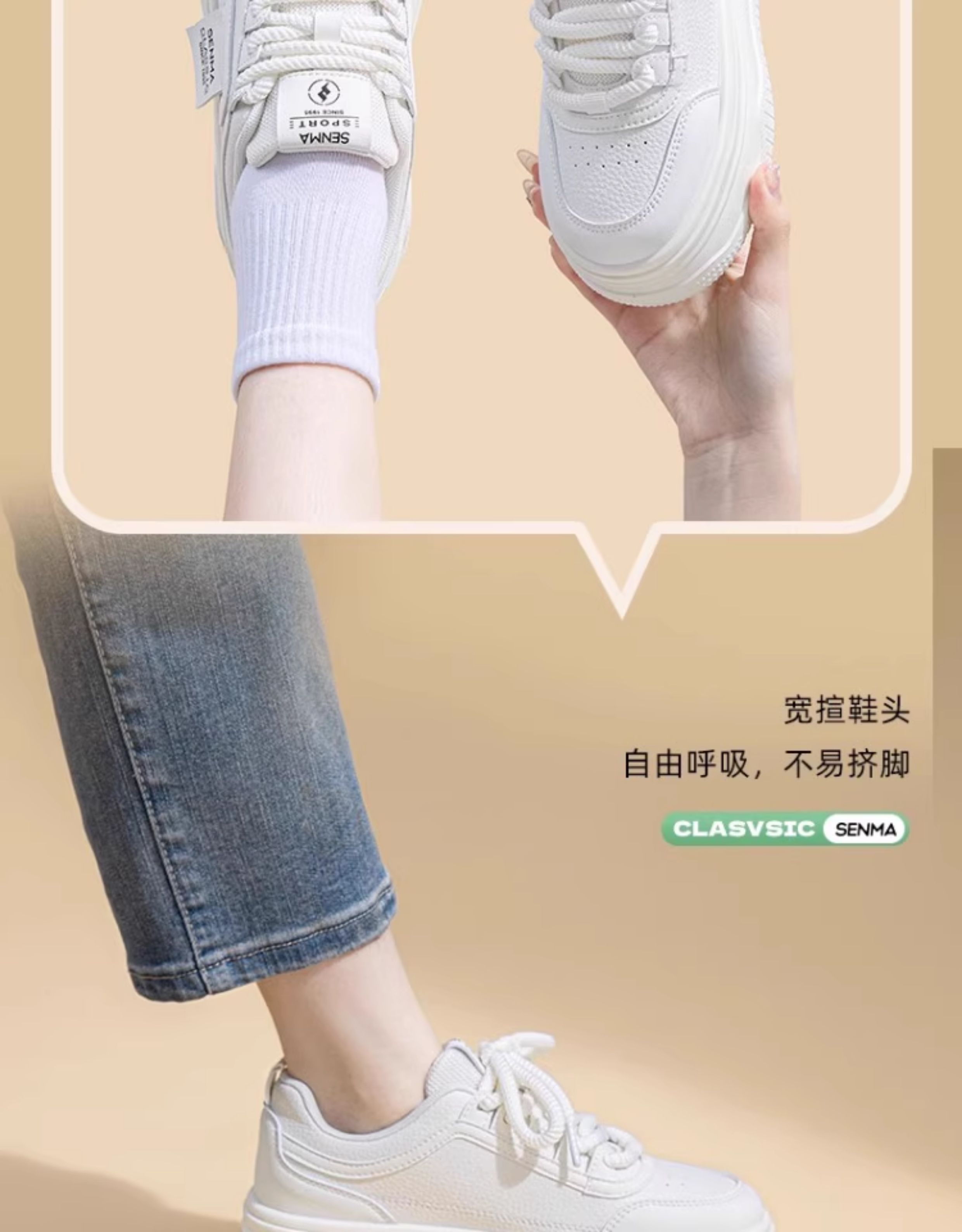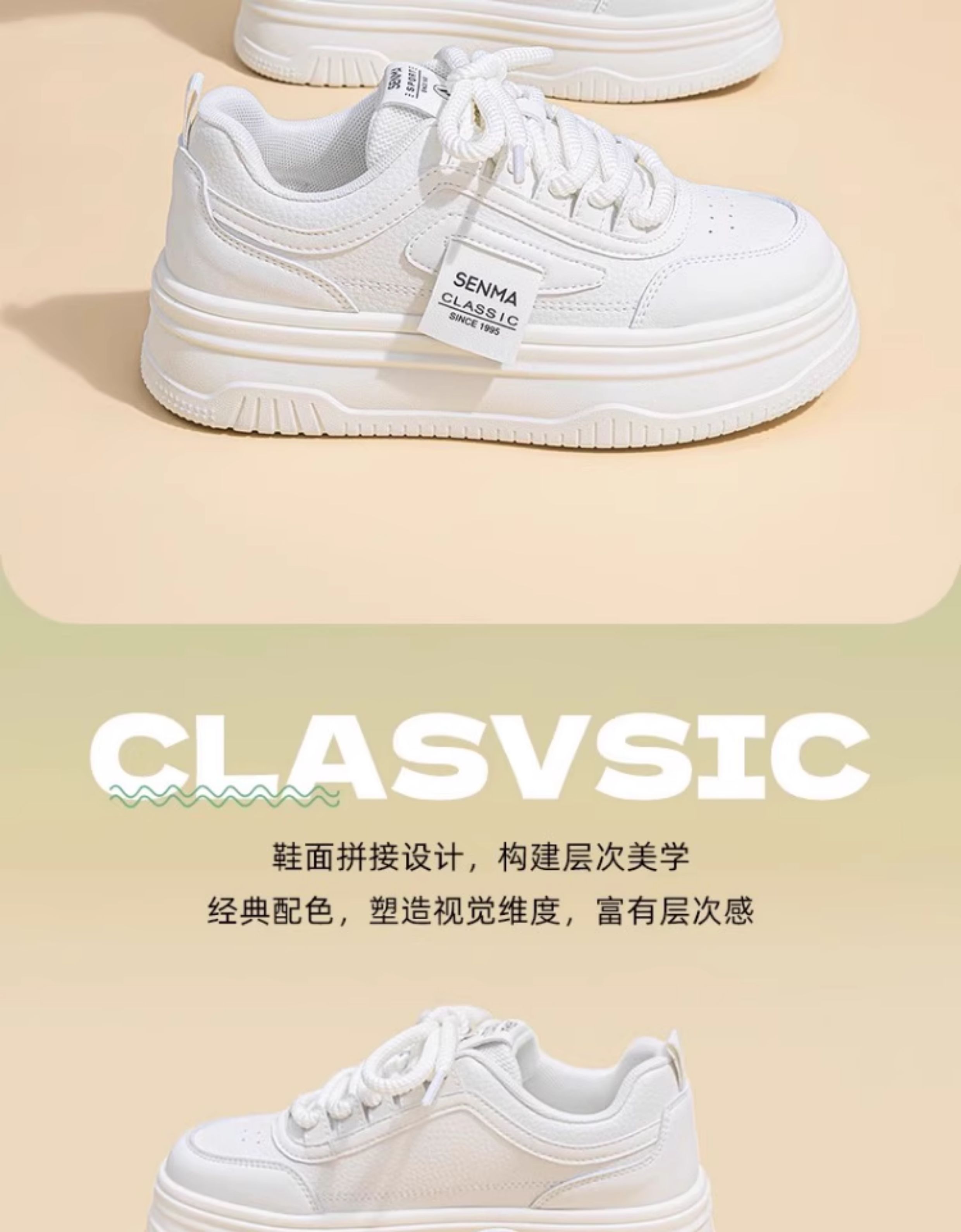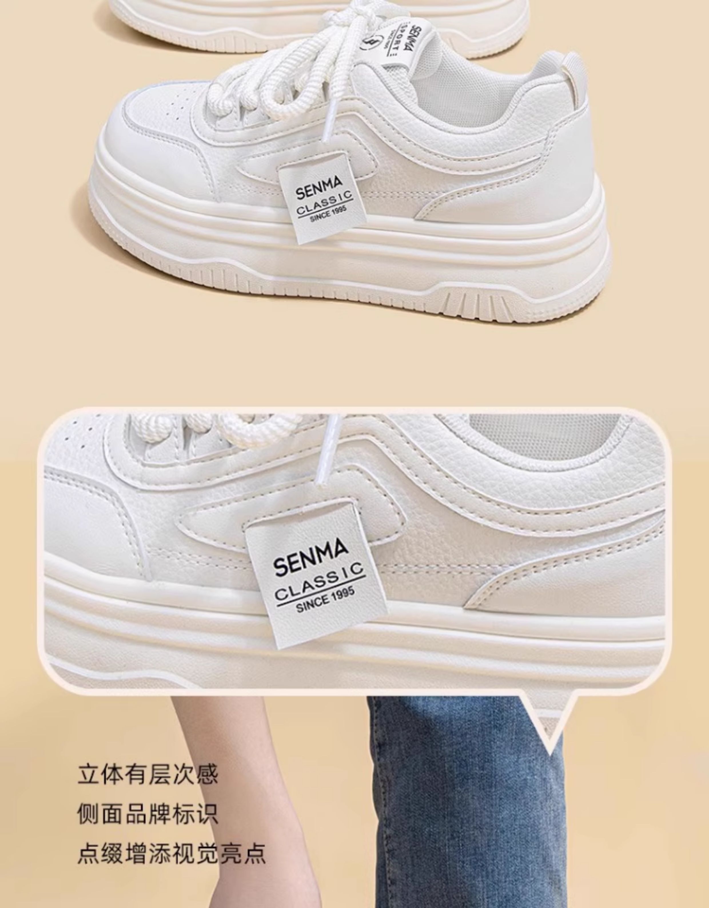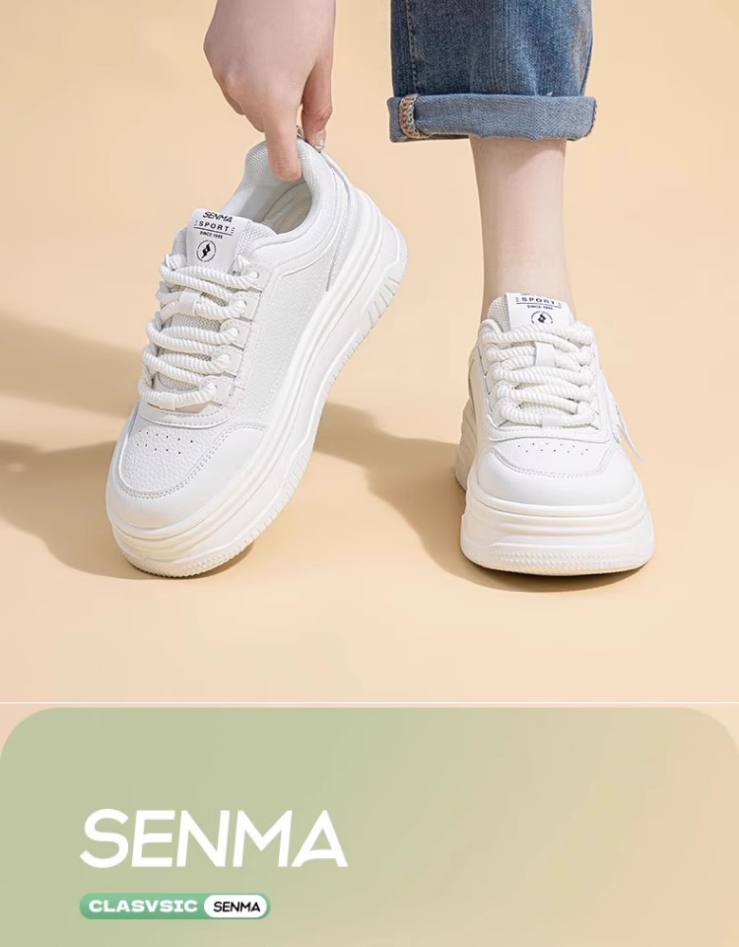 Senma Women's Shoes, Thick-Soled White Sneakers for Women, 2025 New Autumn Comfortable Height-Increasing Casual Sports Sneakers, Versatile for Women