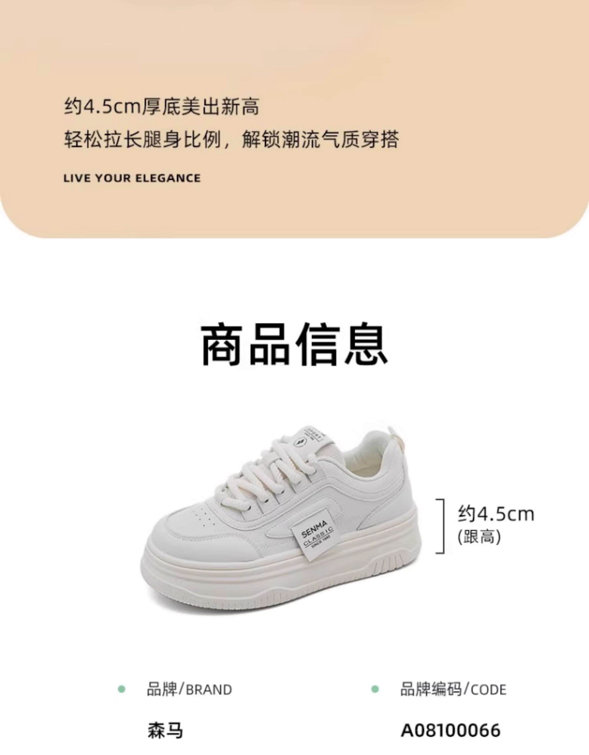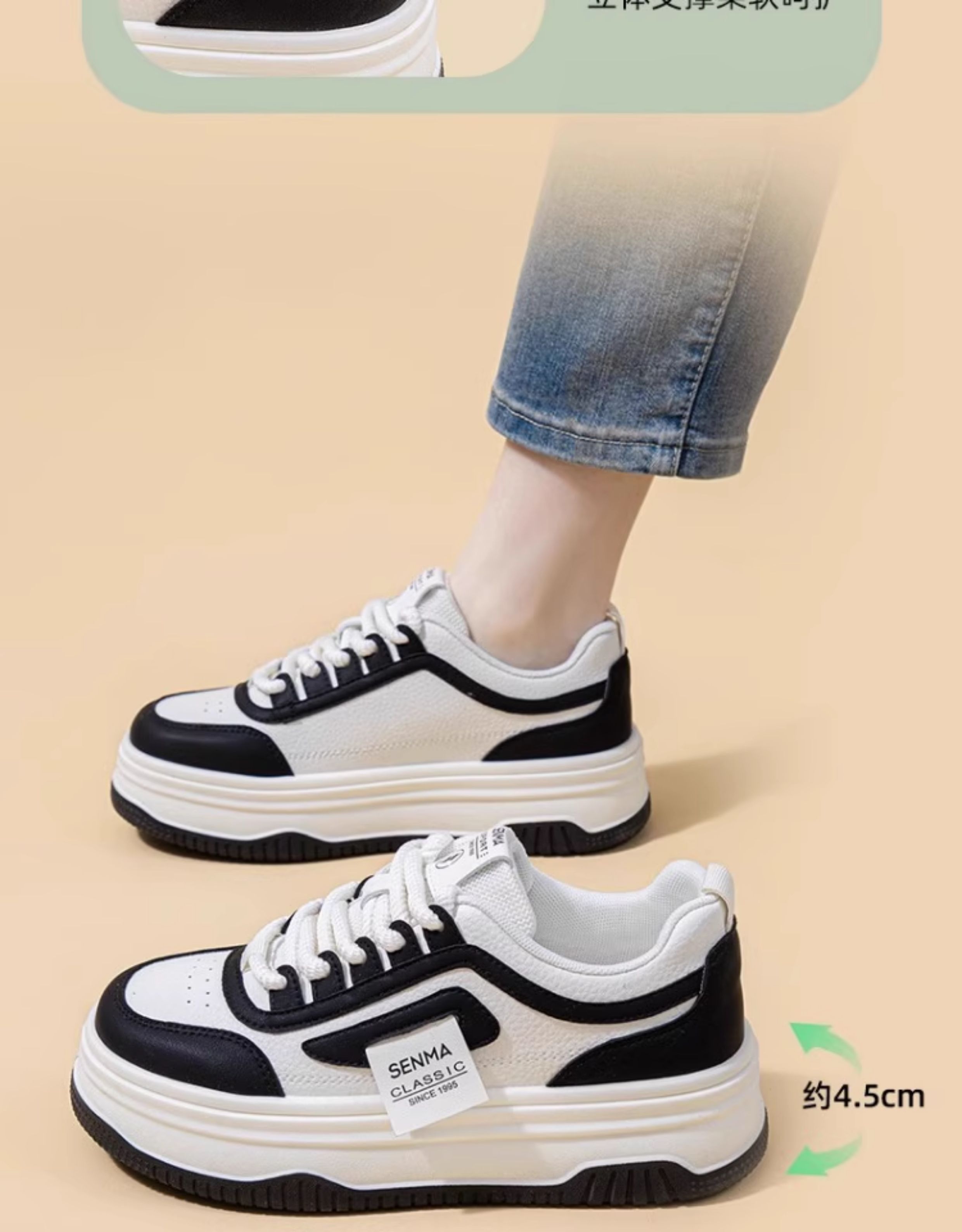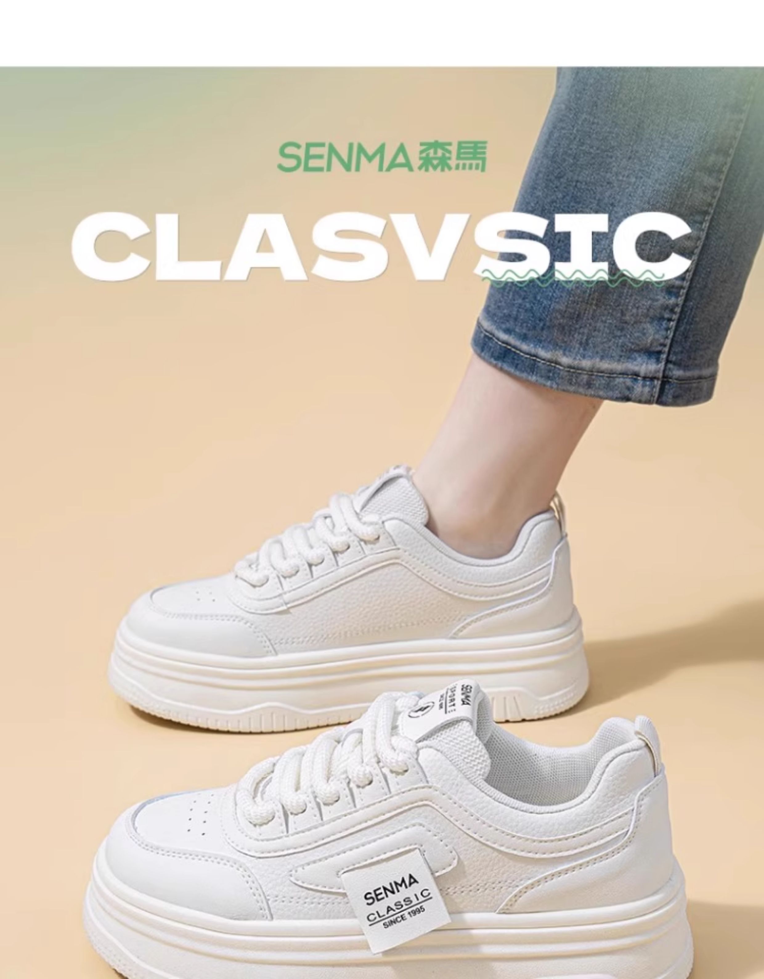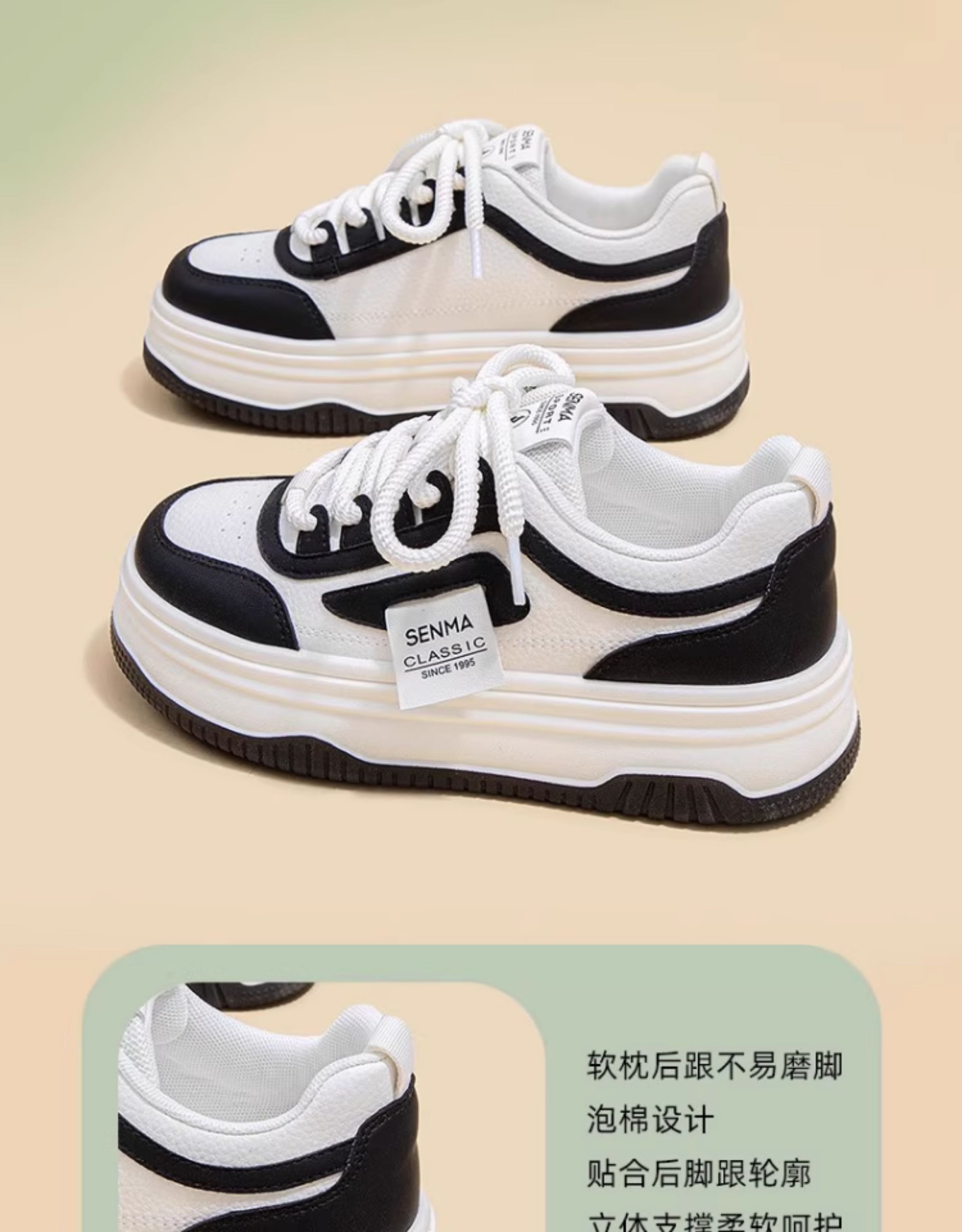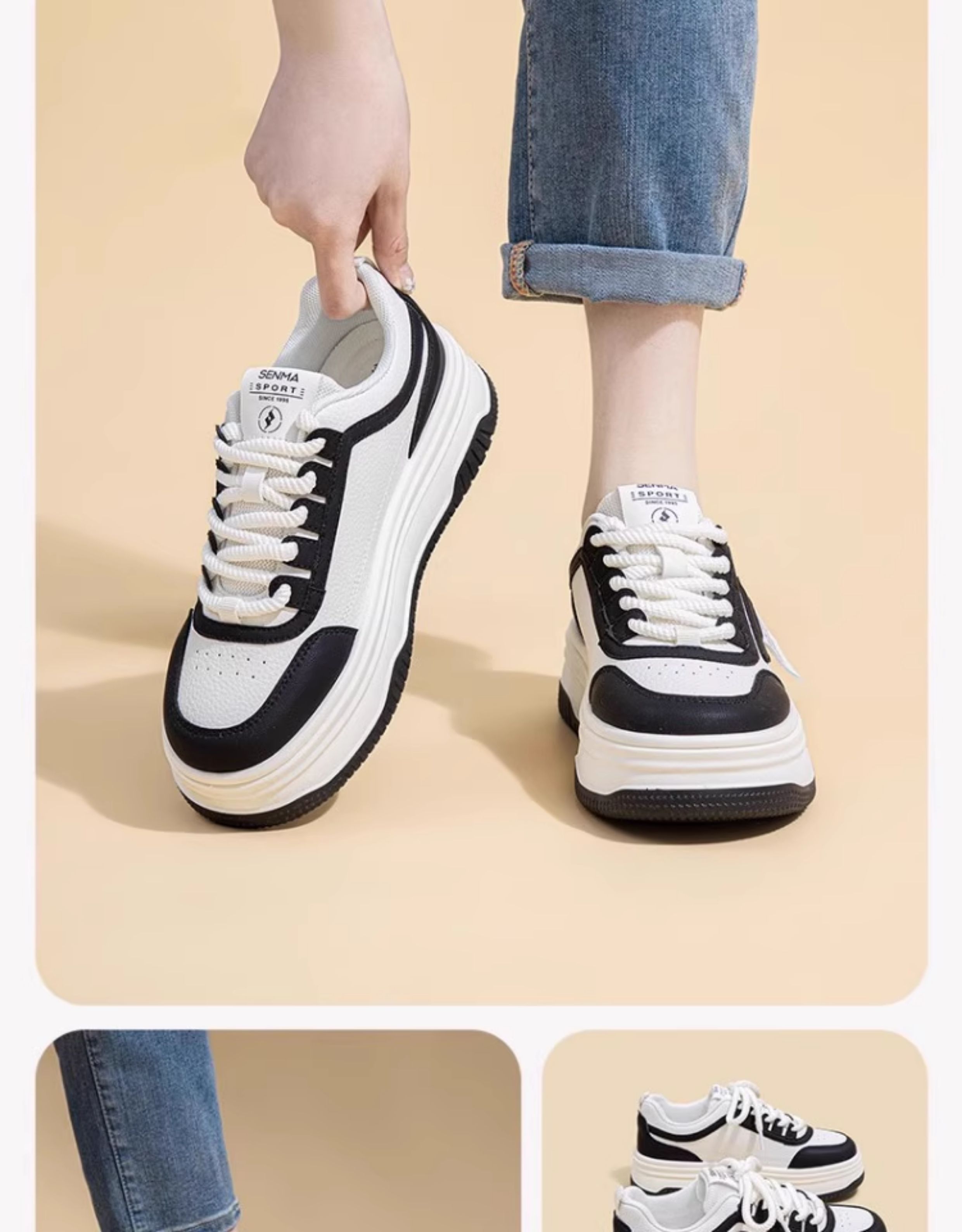Senma Women's Shoes, Thick-Soled White Sneakers for Women, 2025 New Autumn Comfortable Height-Increasing Casual Sports Sneakers, Versatile for Women