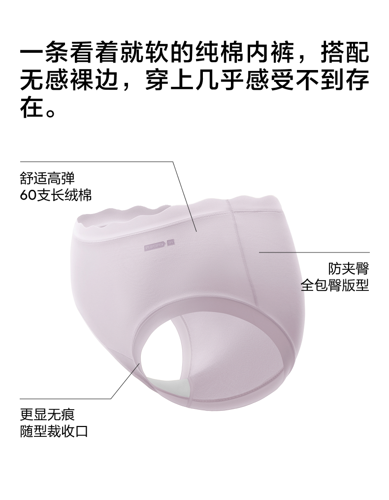 3 Pieces | Jiao Nei Yinpi 510S Women's Underwear, Mid-High Waist, Tummy Control, Pear-Shaped, Pure Cotton, Seamless, Breathable Crotch Briefs for Women.