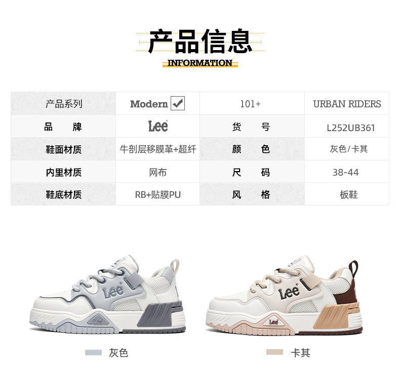 Lee Official Men's Shoes 2025 Autumn New Sports Casual Shoes Versatile Shoes Men's Trendy Shoes Breathable Genuine Leather Sneakers