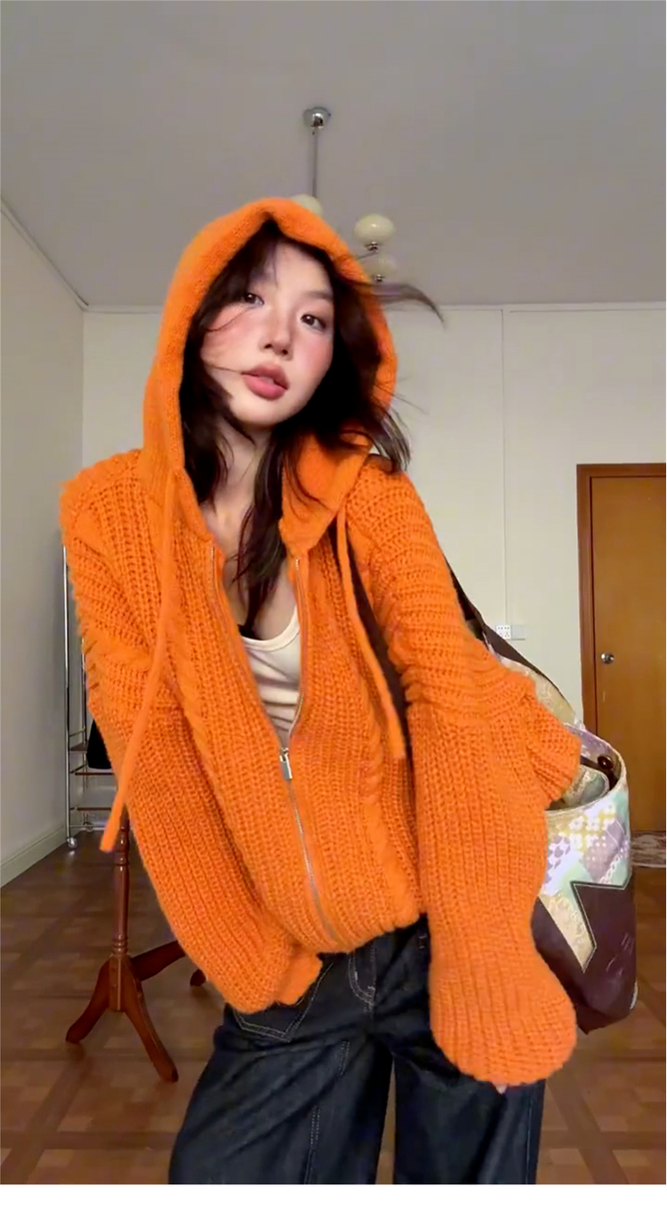 Korean-Style Atmospheric Orange Sweater Jacket for Women, Autumn and Winter 2025 New Model, Very Beautiful, Light and Mature Knitted Cardigan Top