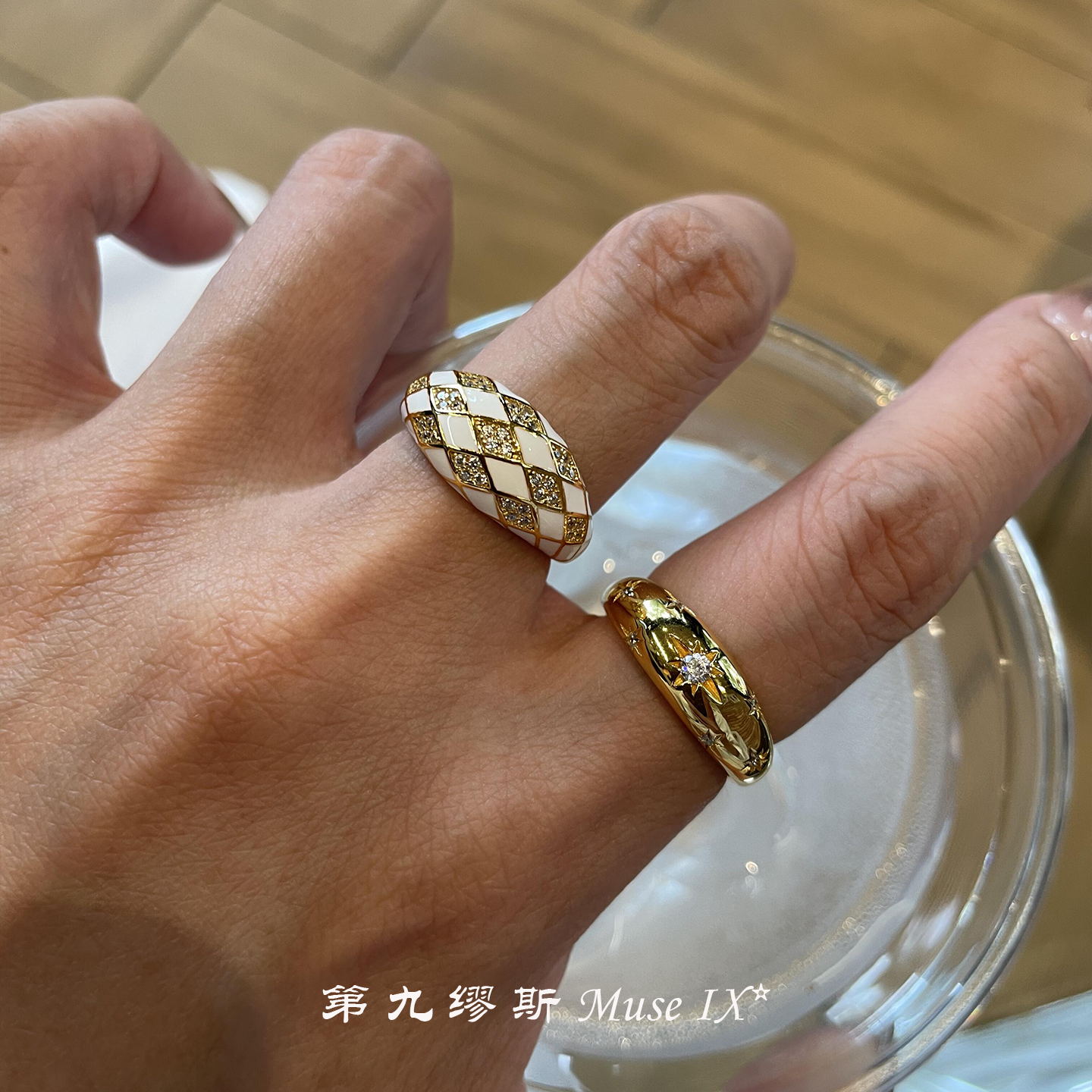 【Ninth Muse】 "Gold and Diamonds Together: Vintage Gold Diamond-Studded Ring for Women, Stackable Eight-Pointed Star Index Finger Ring with Full Diamond Inlay