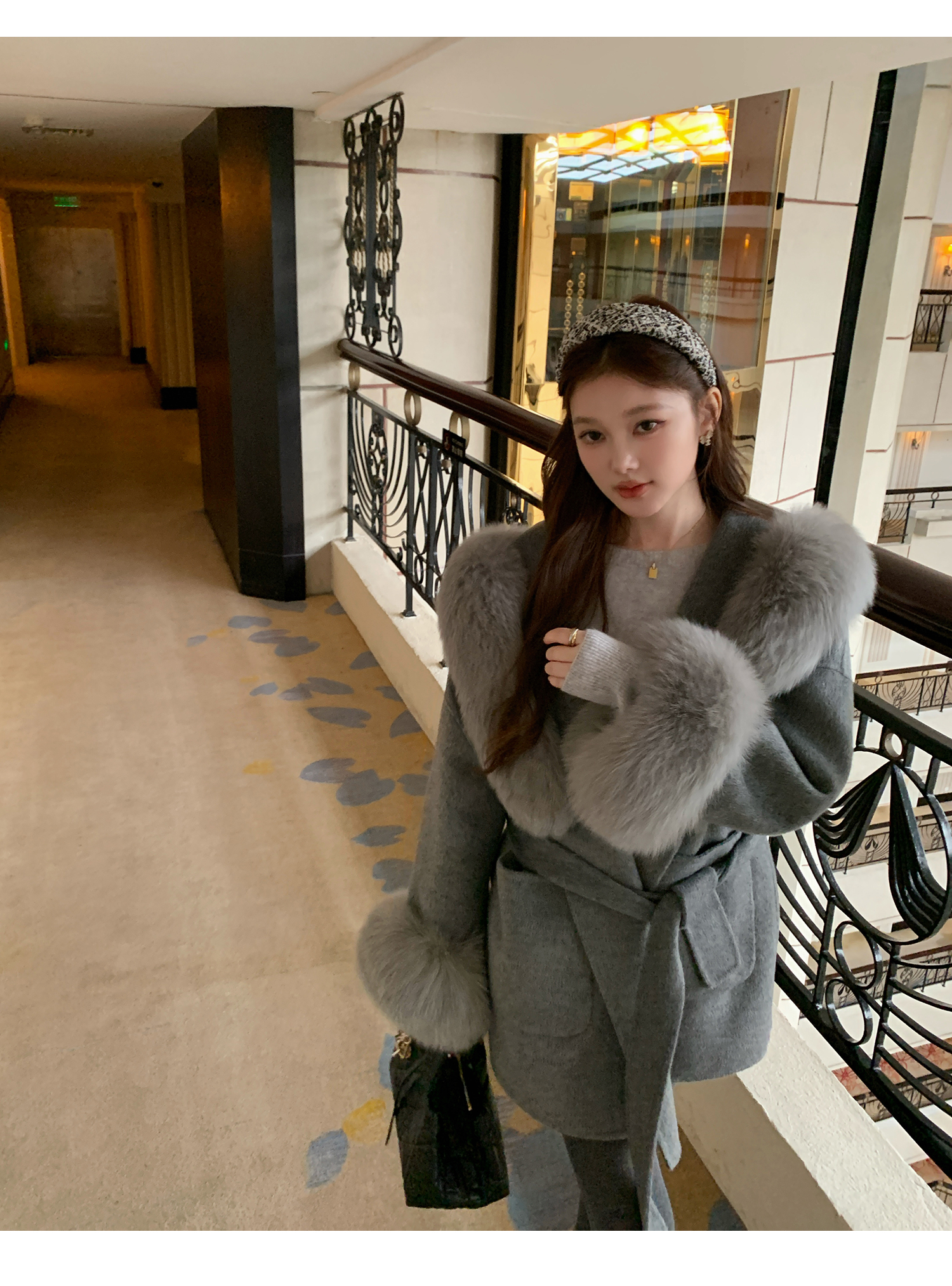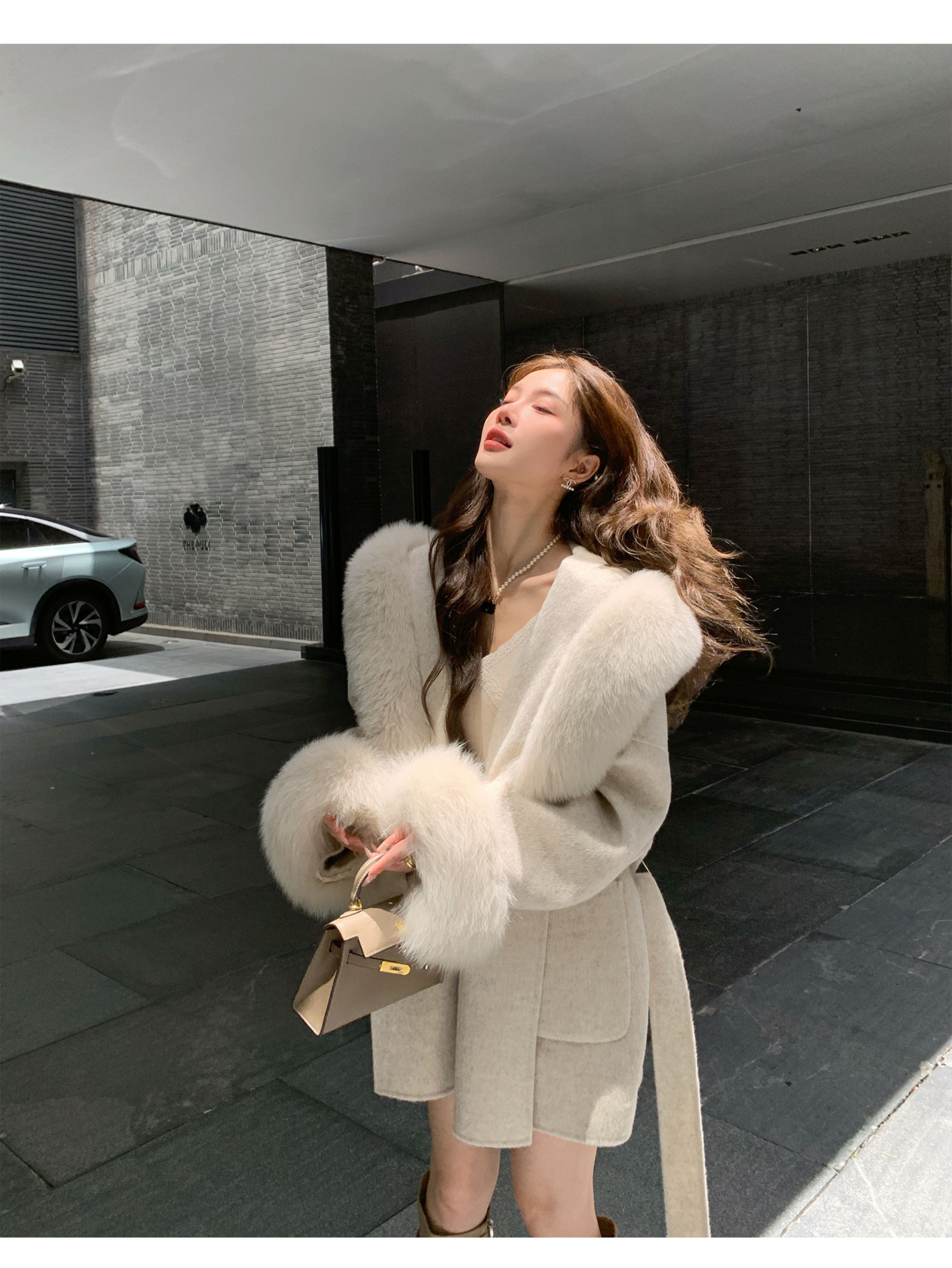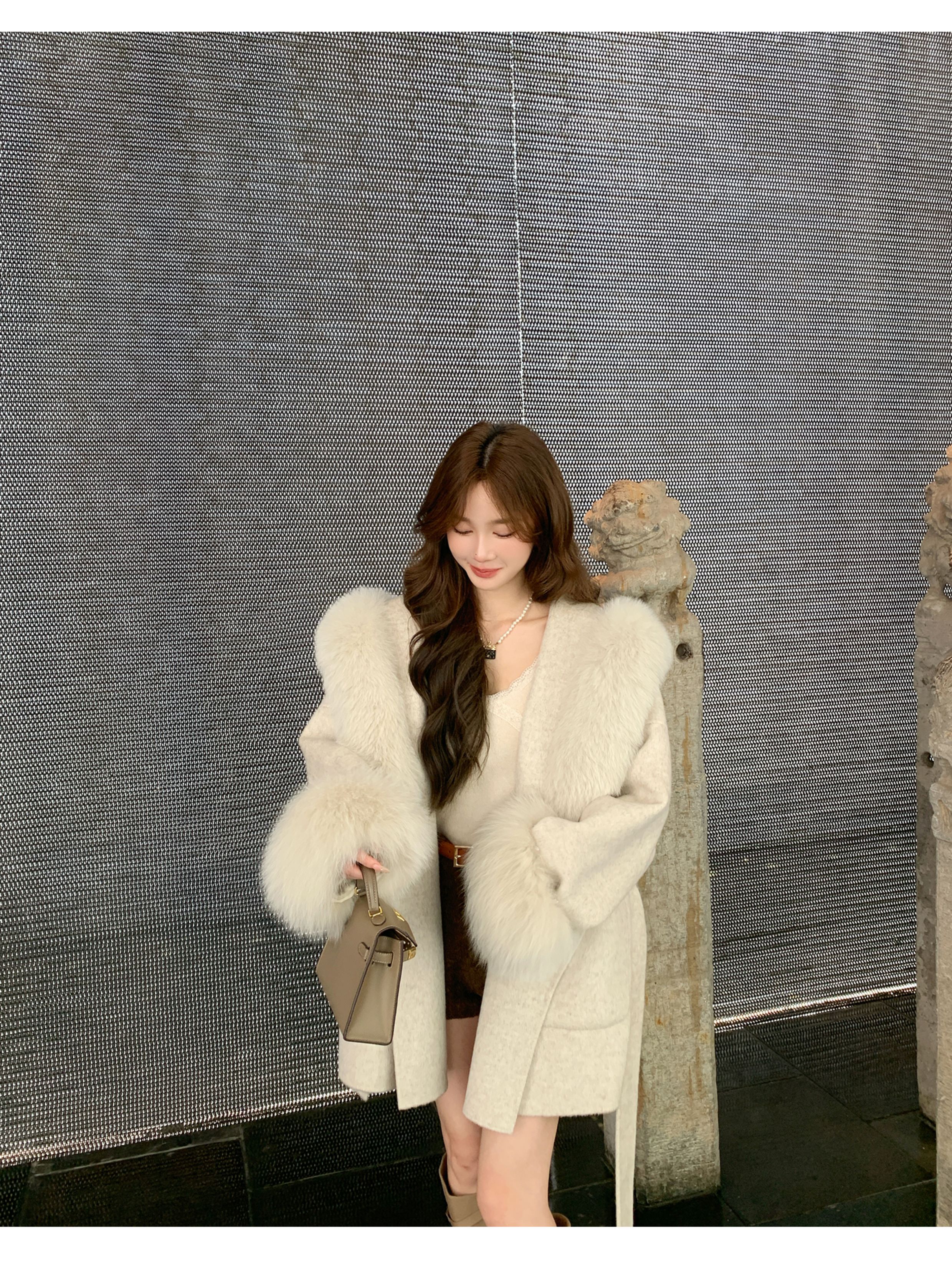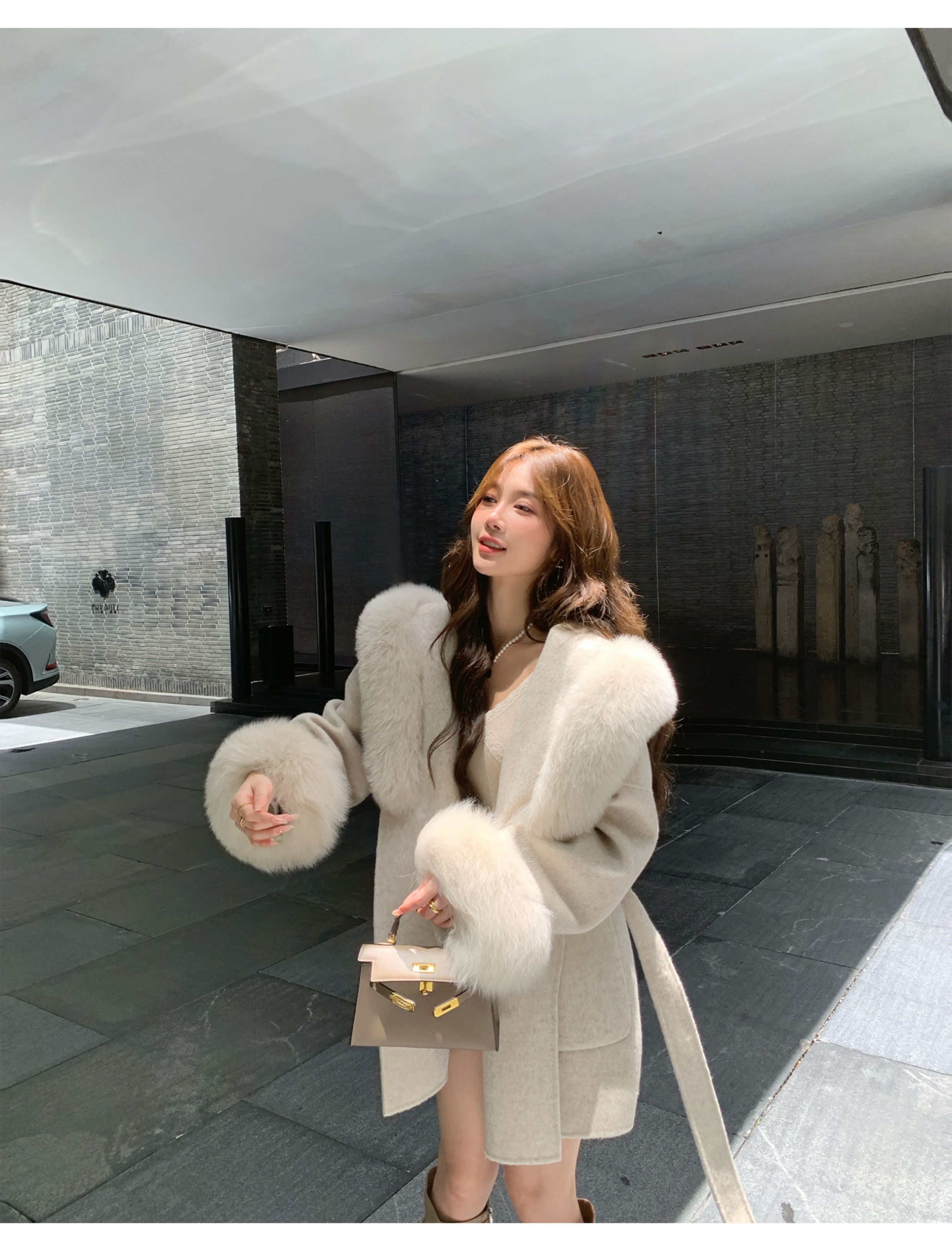 Daisy's New Winter Collection: Oversized Fox Fur Collar Hooded Wool Coat, Double-Sided Woolen Jacket for Women