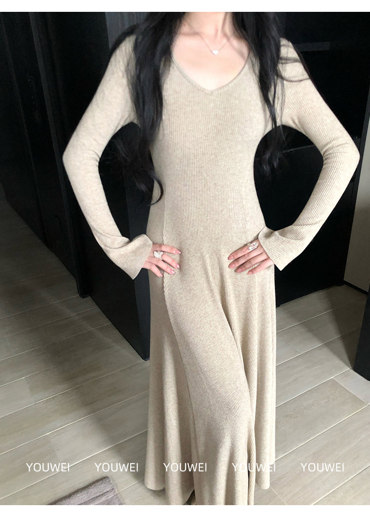 Youwei Long-Sleeve Base Layer Autumn and Winter Dress for Women 2025 New Winter High-End Knit Dress for Layering