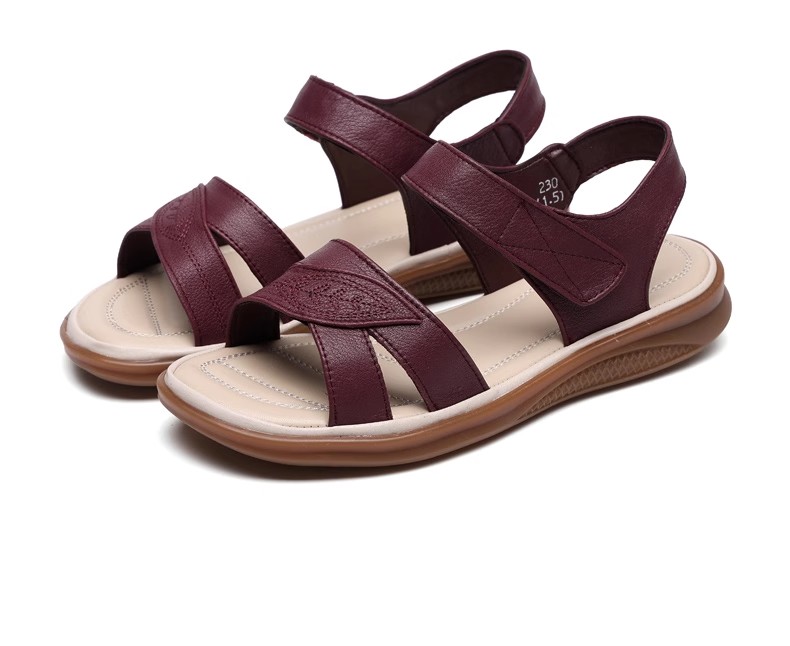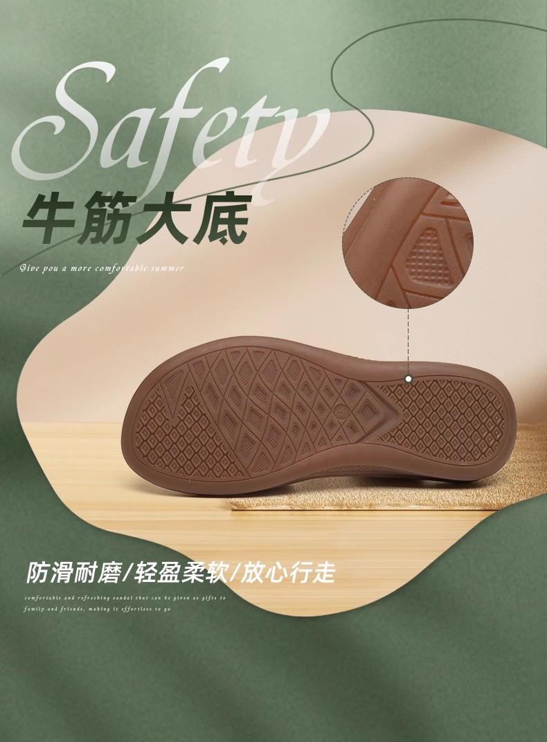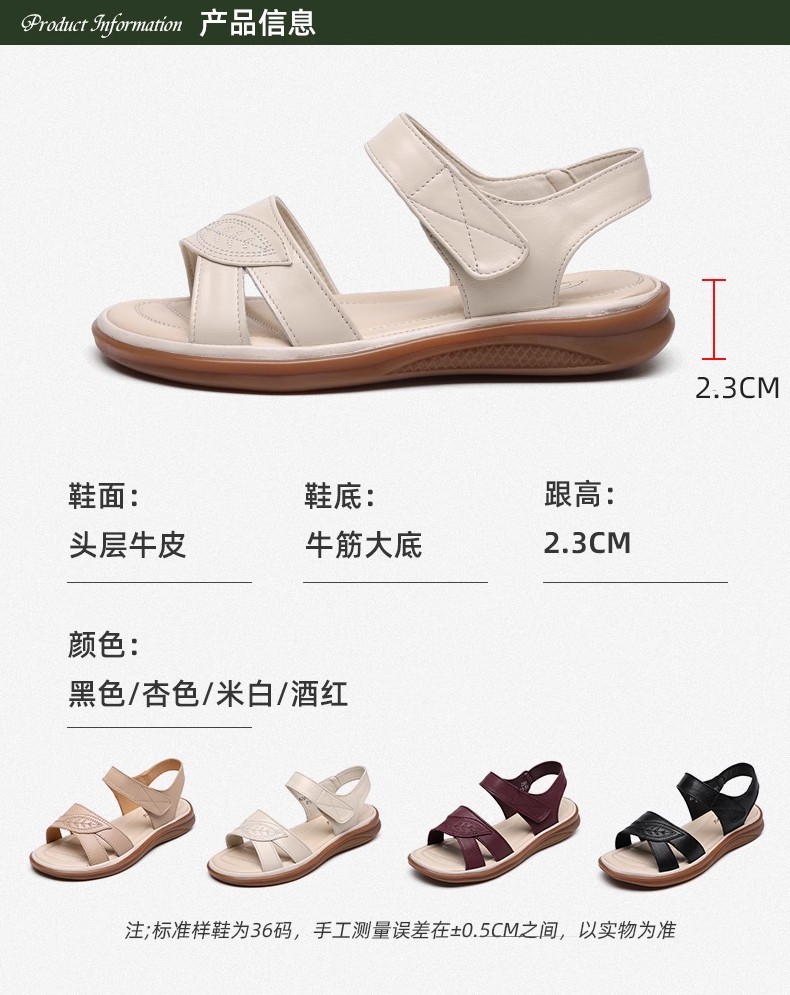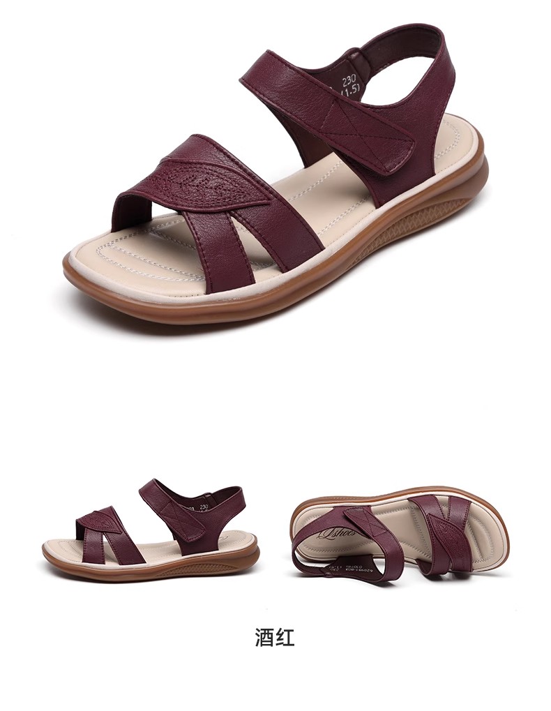 2025 New Style Middle-Aged Mom Sandals Summer Non-Slip Rubber Sole Flat Large Size Comfortable Genuine Leather Women's Shoes