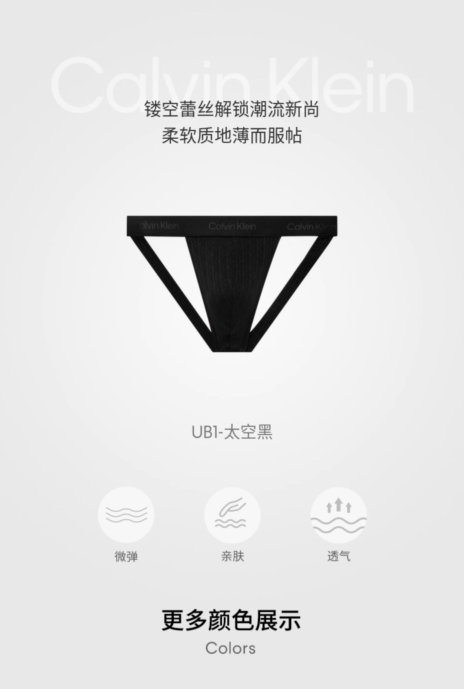 Ck Underwear 25 Autumn/Winter New Men's Sexy Hollow Black Lightweight Lace Monogram Double Thong Underwear
