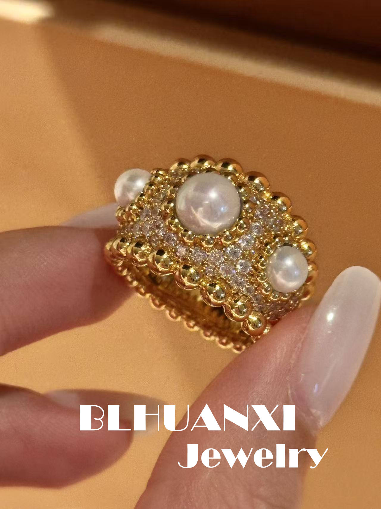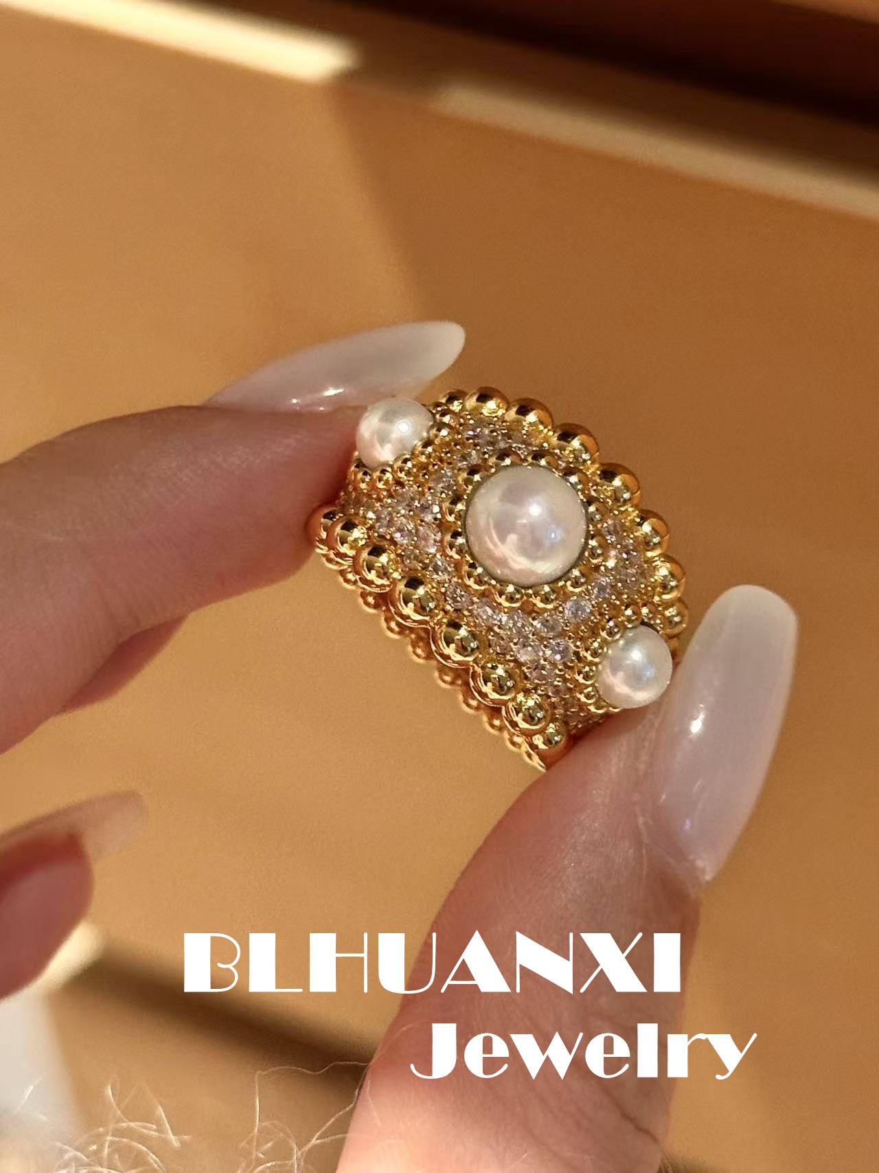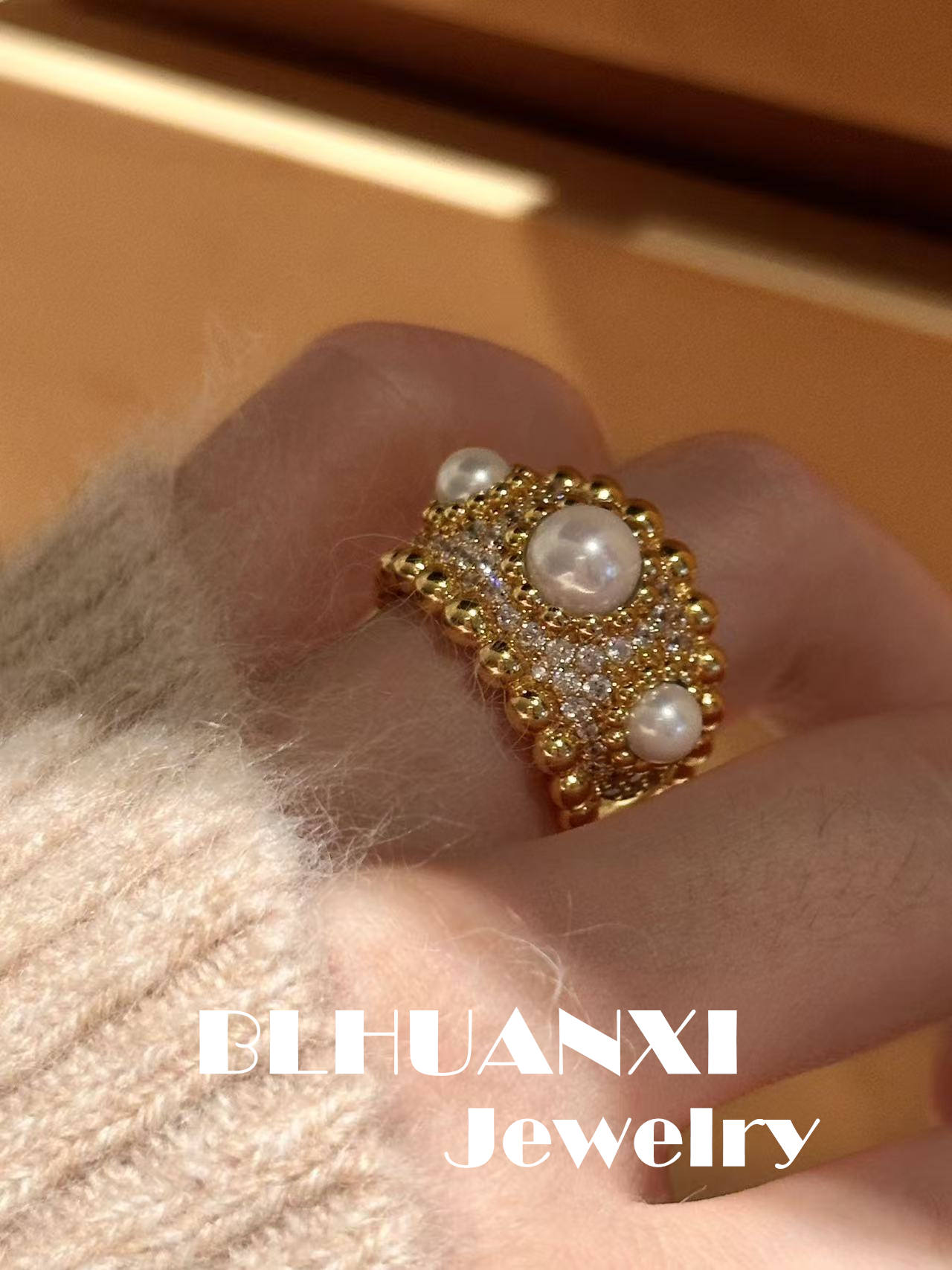 【Look for Joy】925 Silver Gold-Plated High-End Series Chanel-Inspired Vintage Heavy-Duty Pearl Ring
