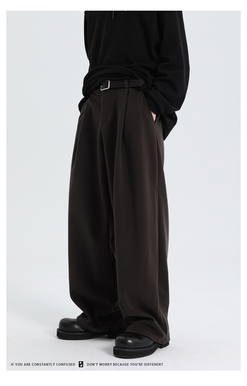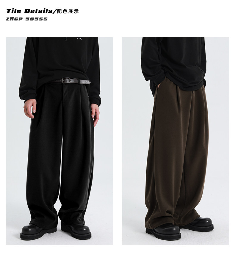 Fearless Deer Spring and Autumn Retro Thickened Wide-Leg Woolen Trousers for Men, Loose and Unique with a Draped Casual Woolen Long Pants