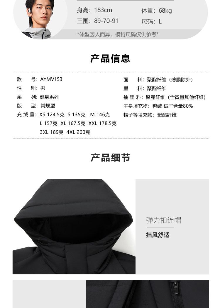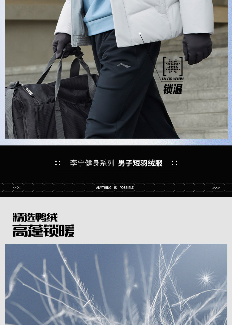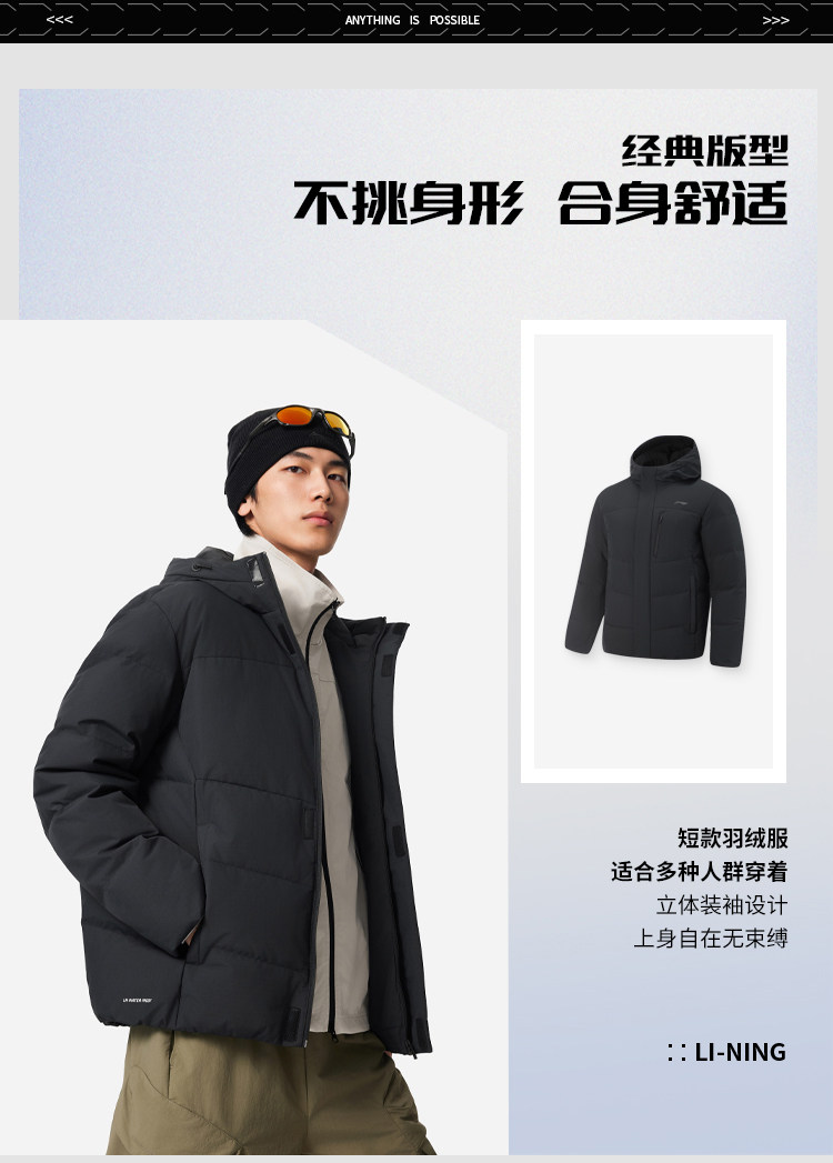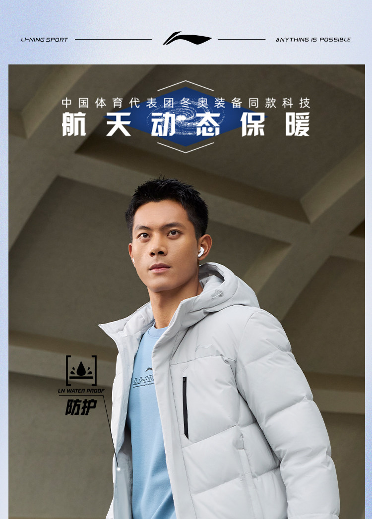 Chen Long's Same Style Li-Ning Aerospace Dynamic Thermal down Jacket for Men, Winter Official Short Hooded Sports Top