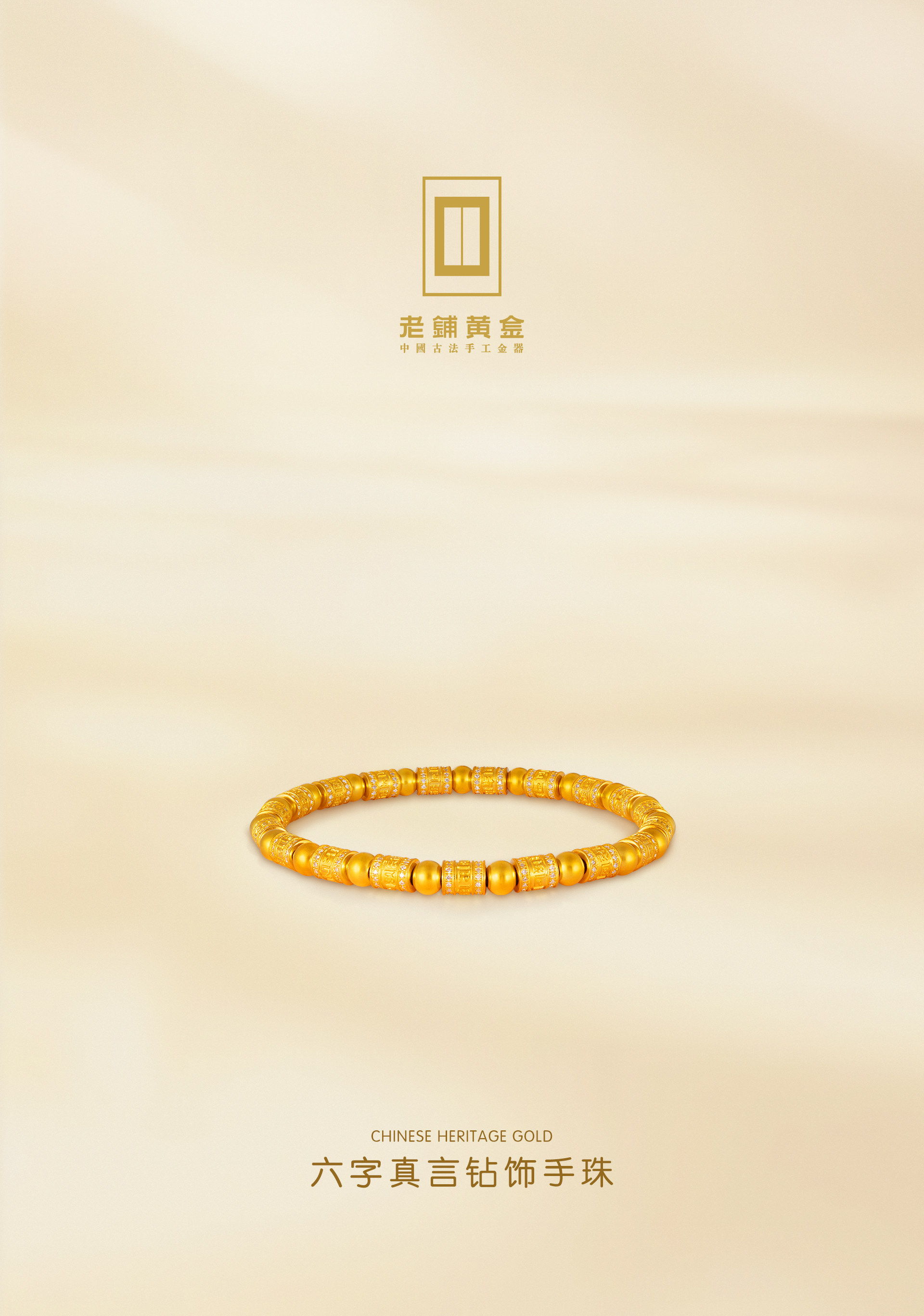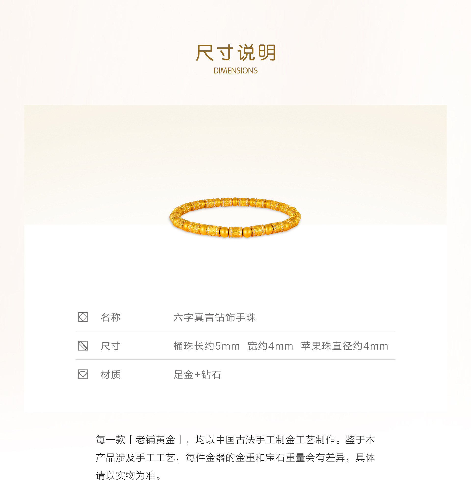 Old Store Gold Traditional Handmade Pure Gold Beads·Six-Character Mantra Diamond-Encrusted Beads