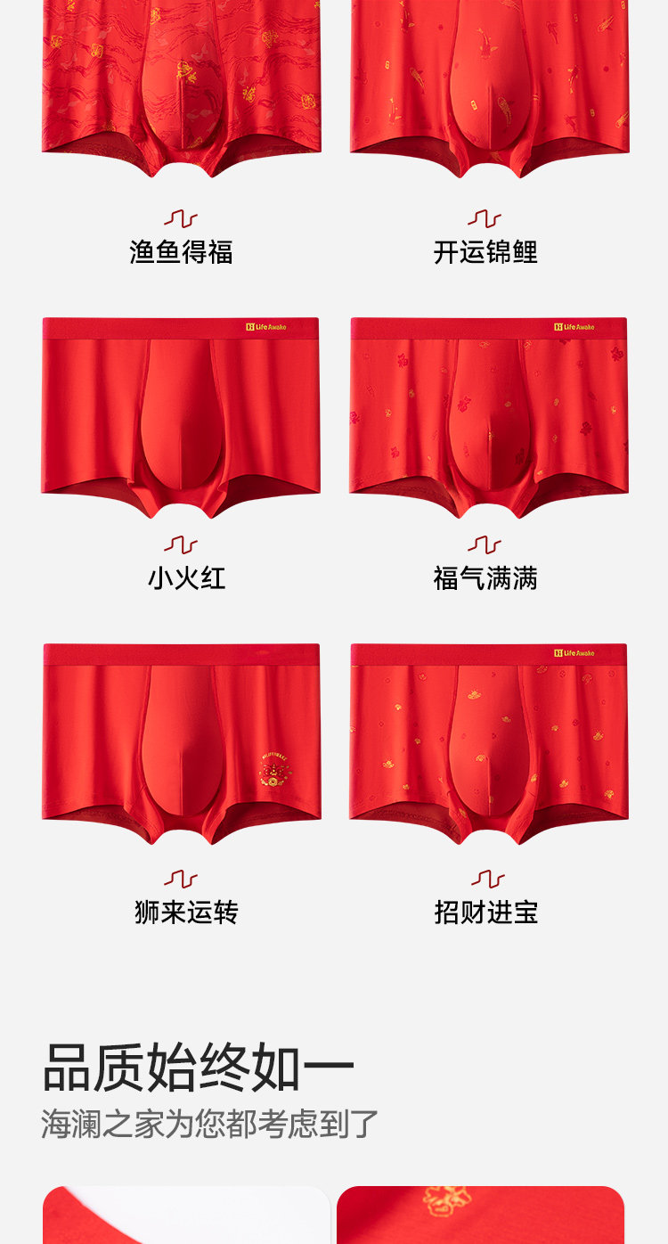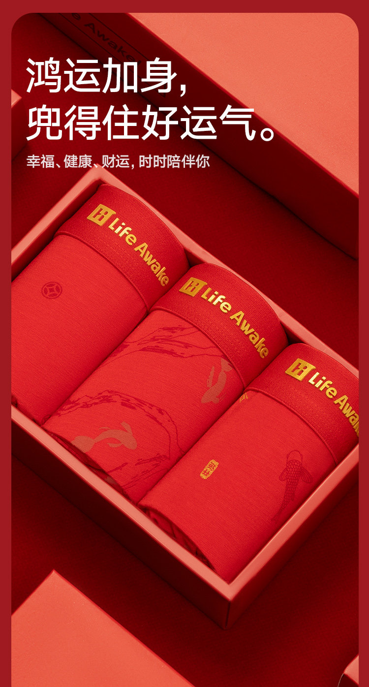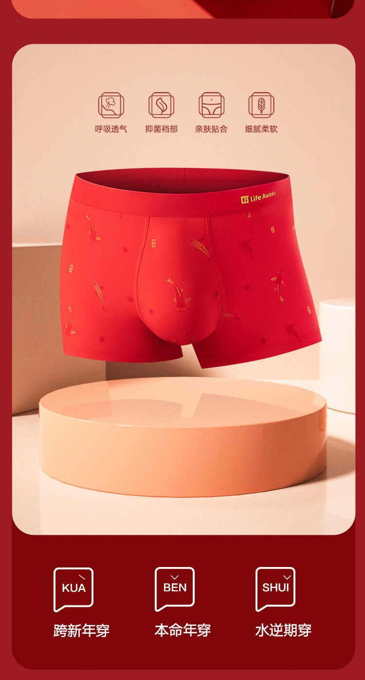 Heilan Home Men's Red Boxer Briefs for the Year of the Horse, Antibacterial and Breathable, 2026 Year of the Horse