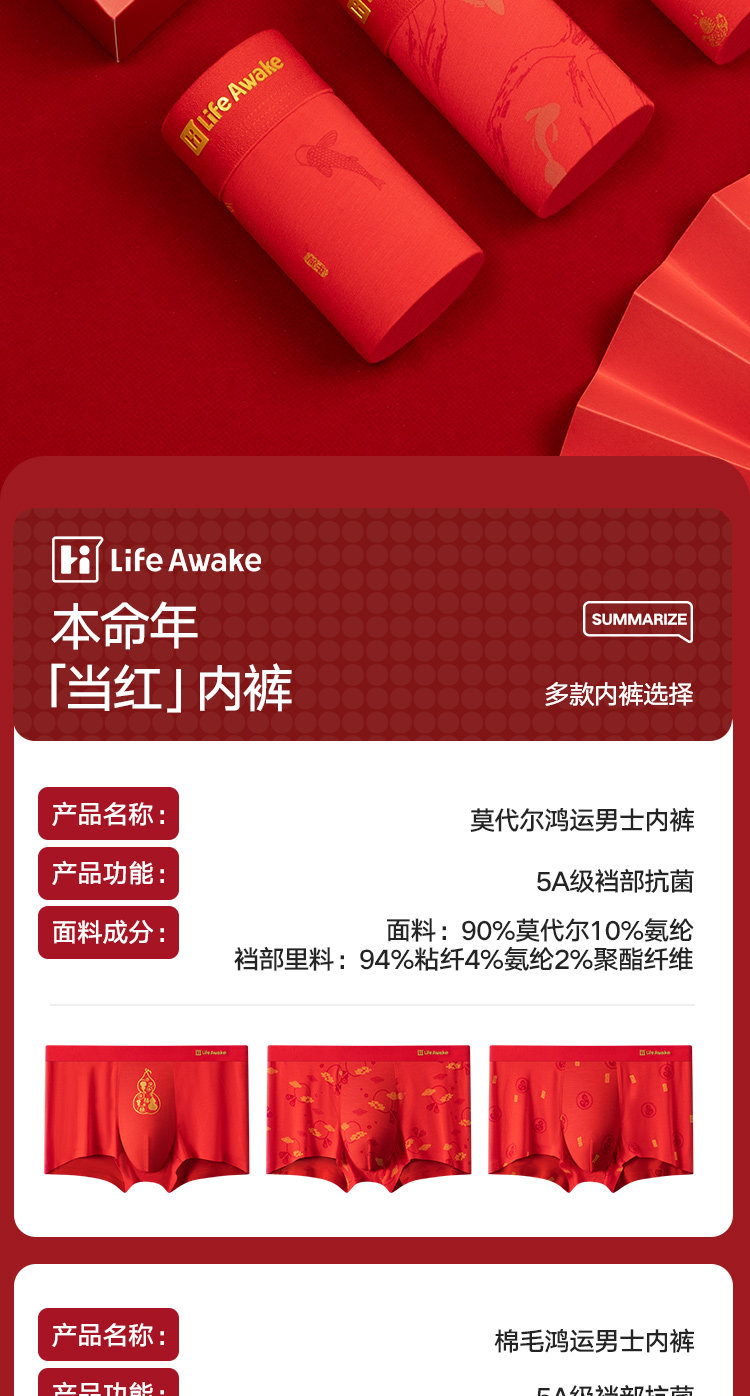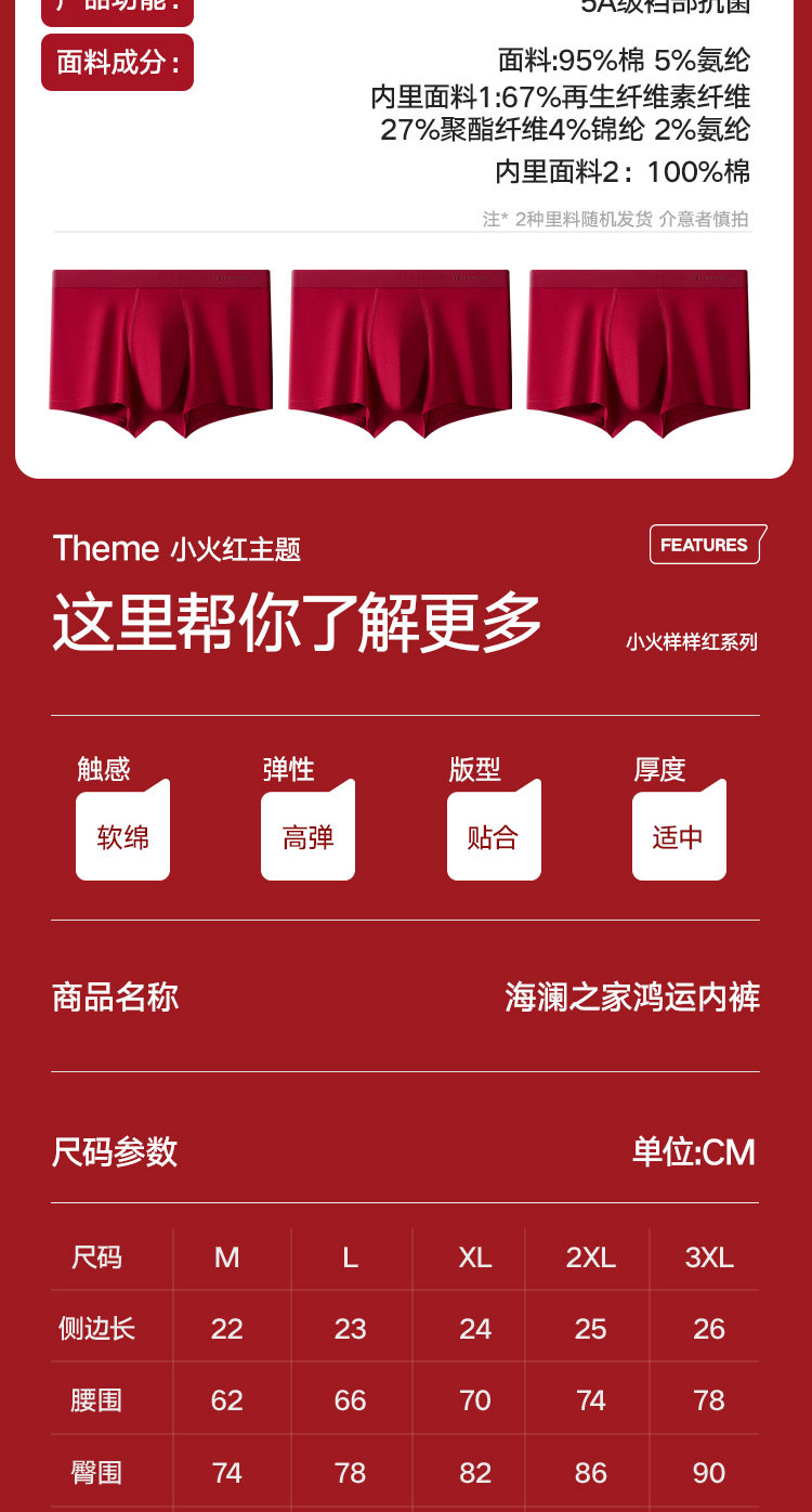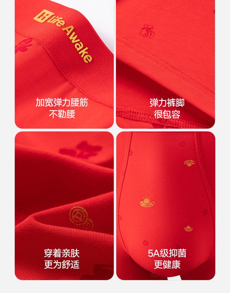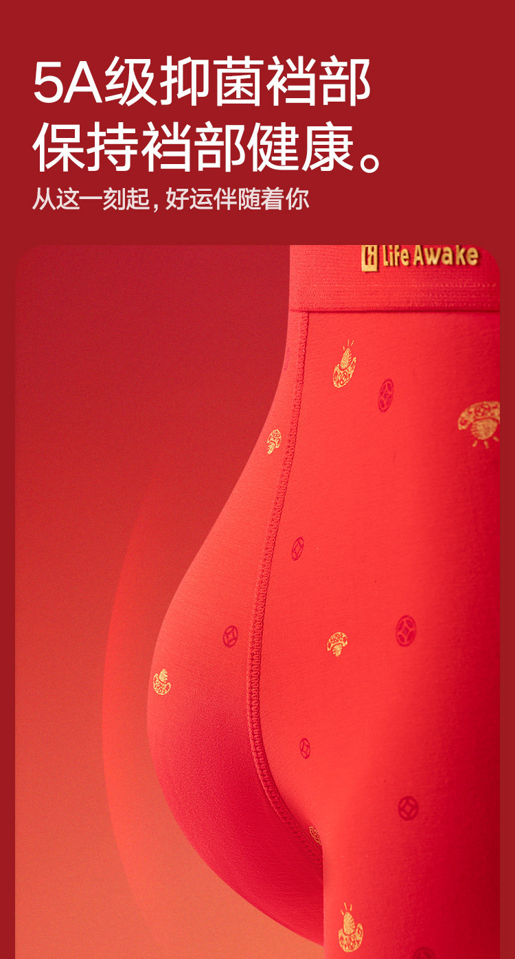 Heilan Home Men's Red Boxer Briefs for the Year of the Horse, Antibacterial and Breathable, 2026 Year of the Horse