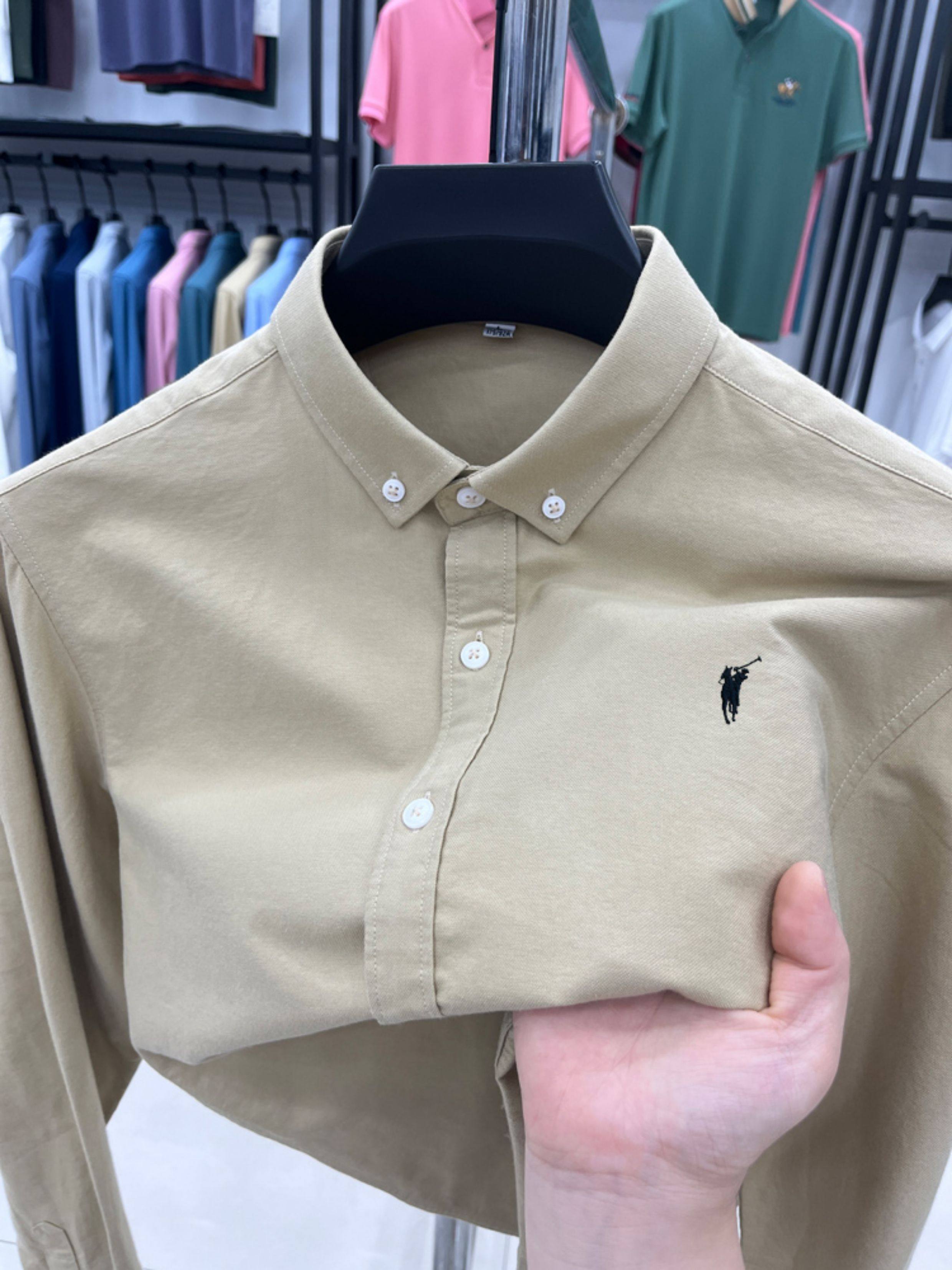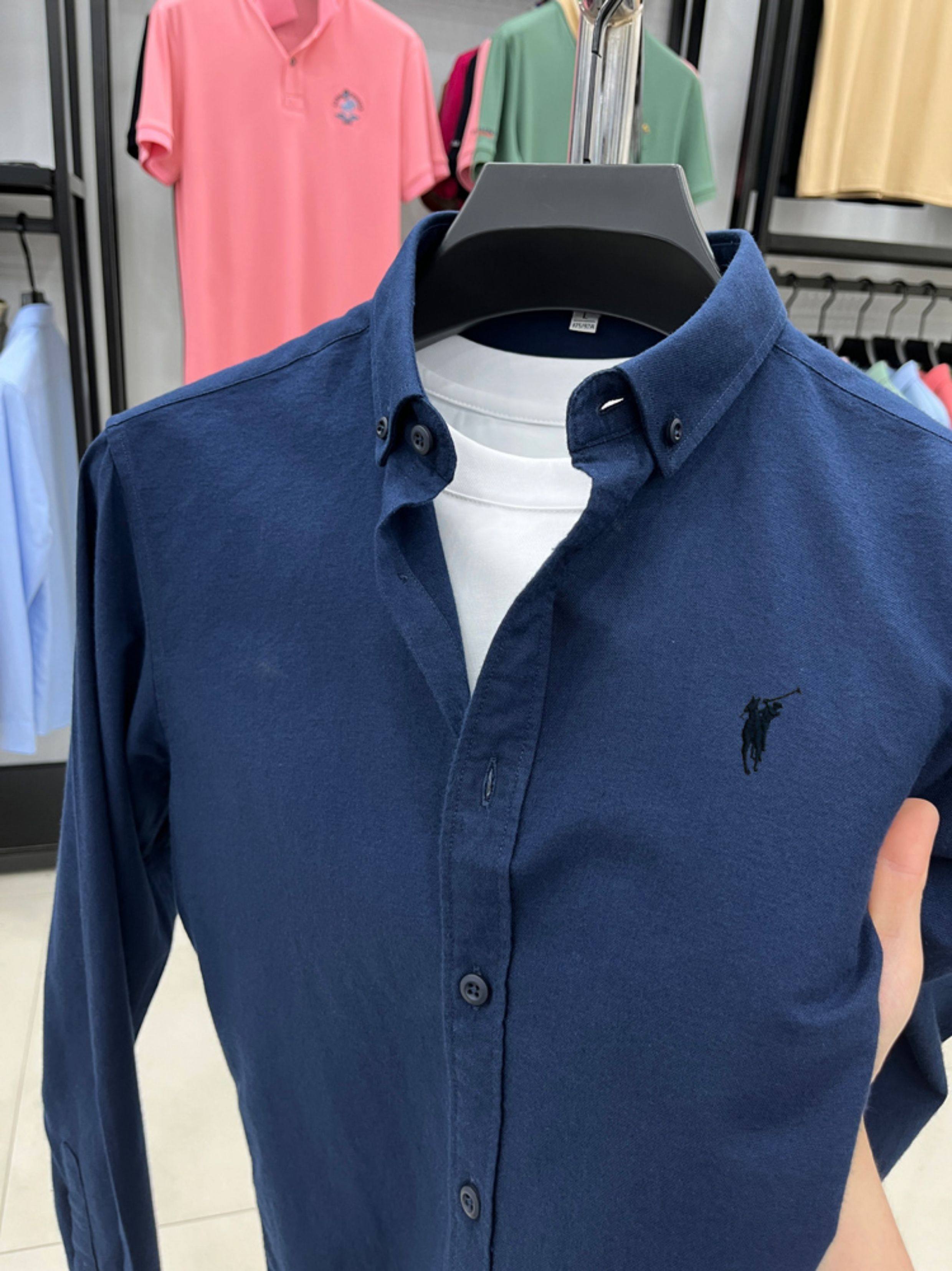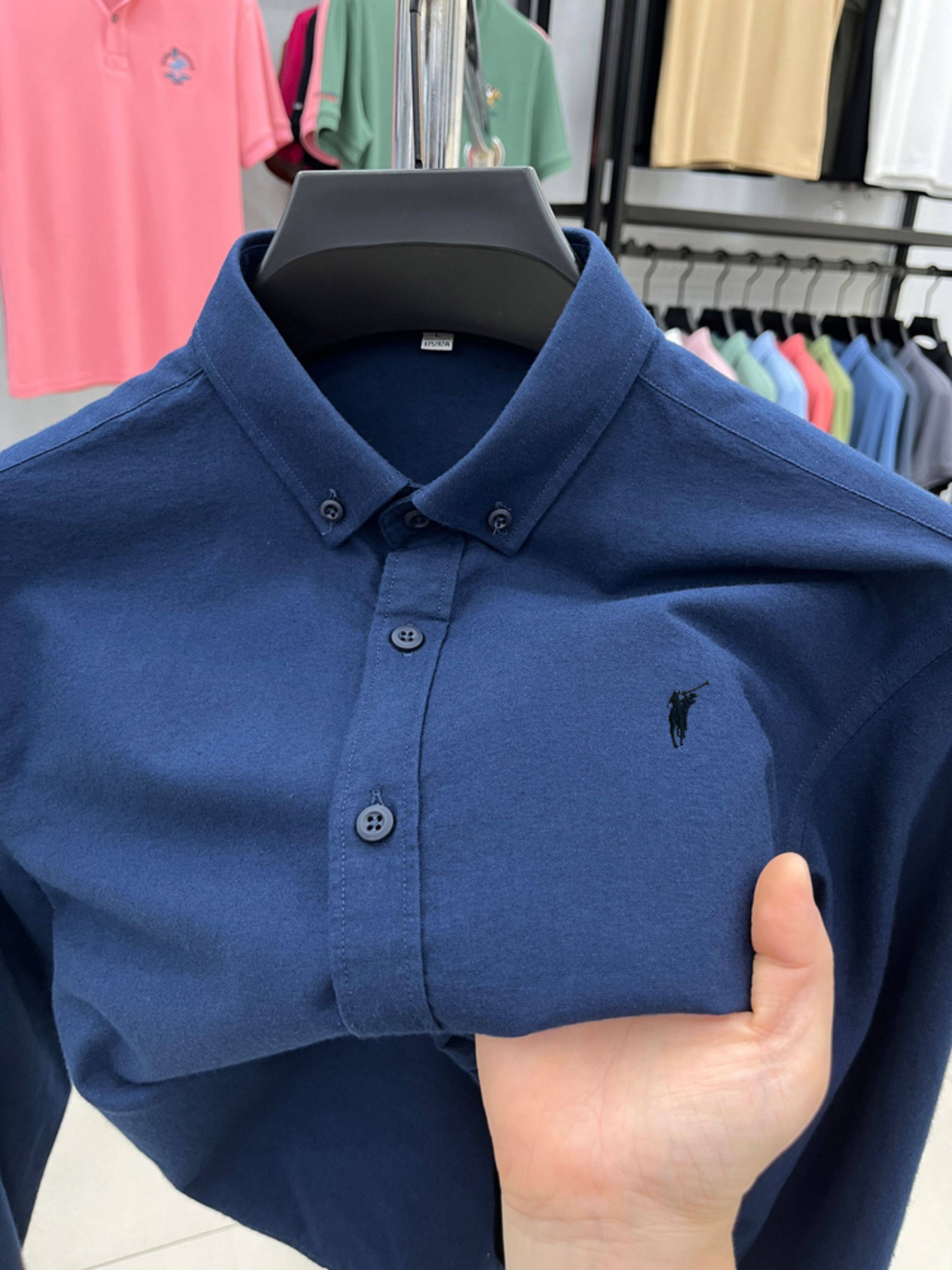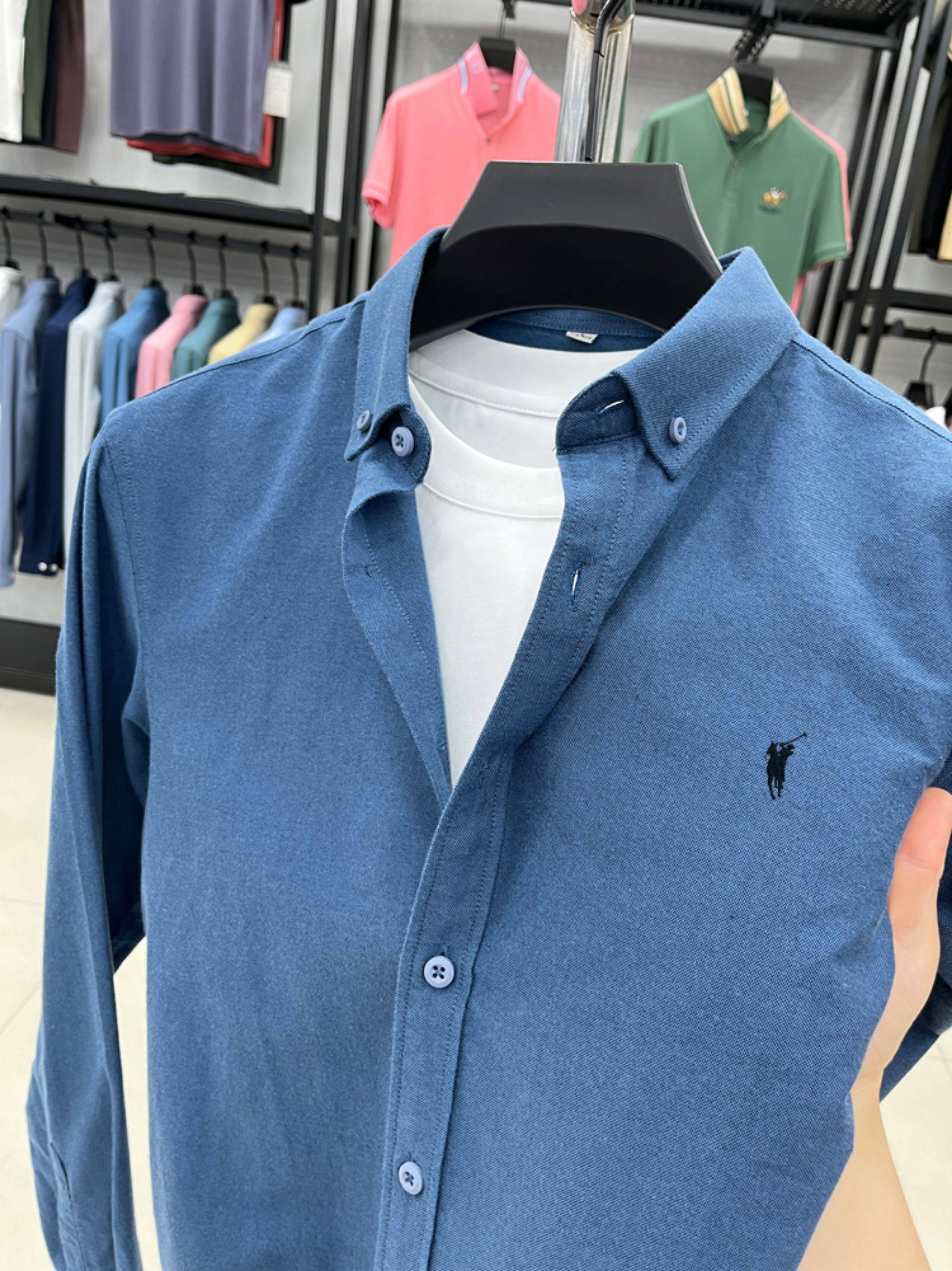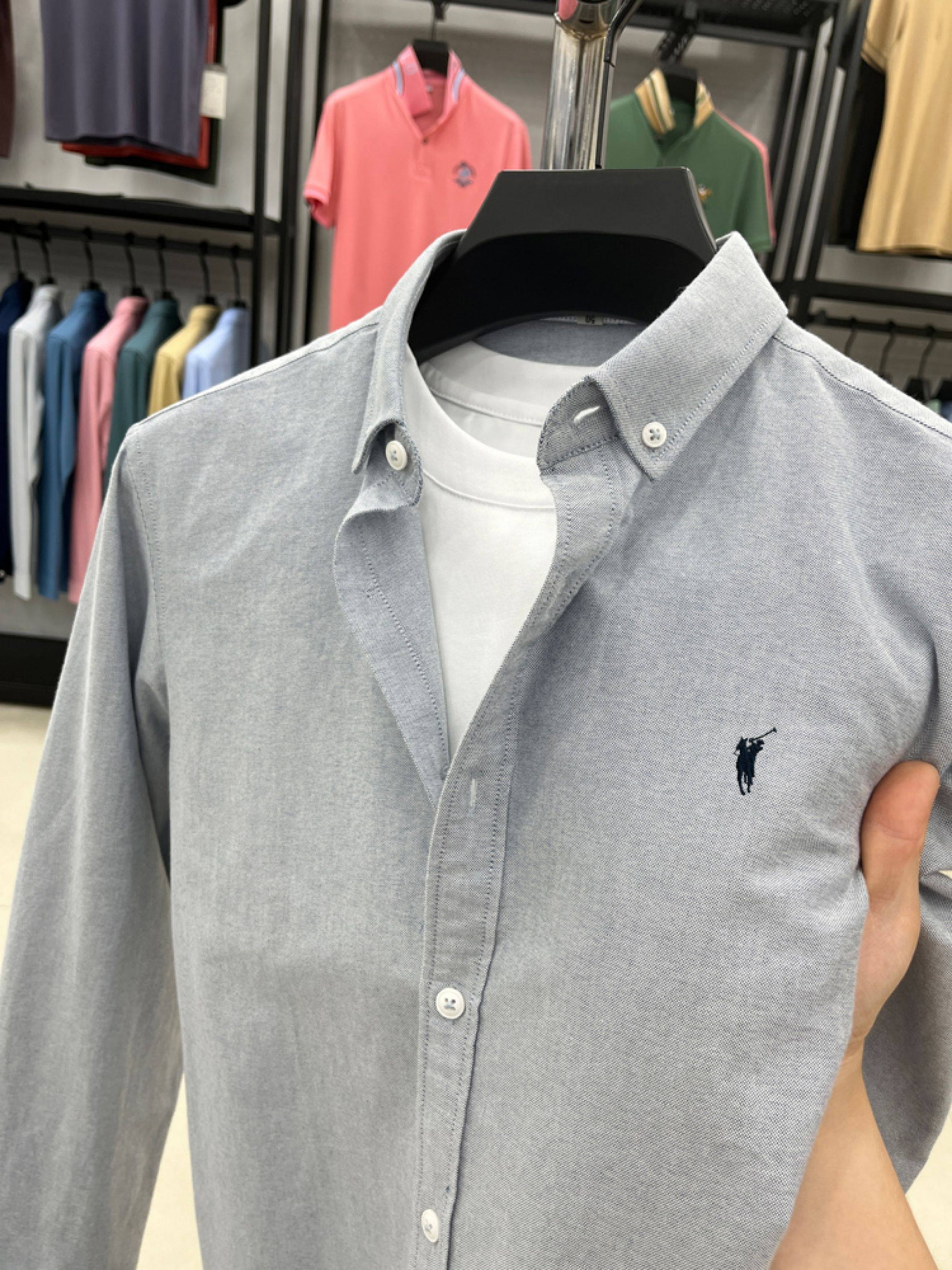 [Outlet Brand Discount] Paul Pure Cotton Long-Sleeve Shirt for Men, Spring and Autumn, Horse Logo Casual Oxford Fabric Shirt