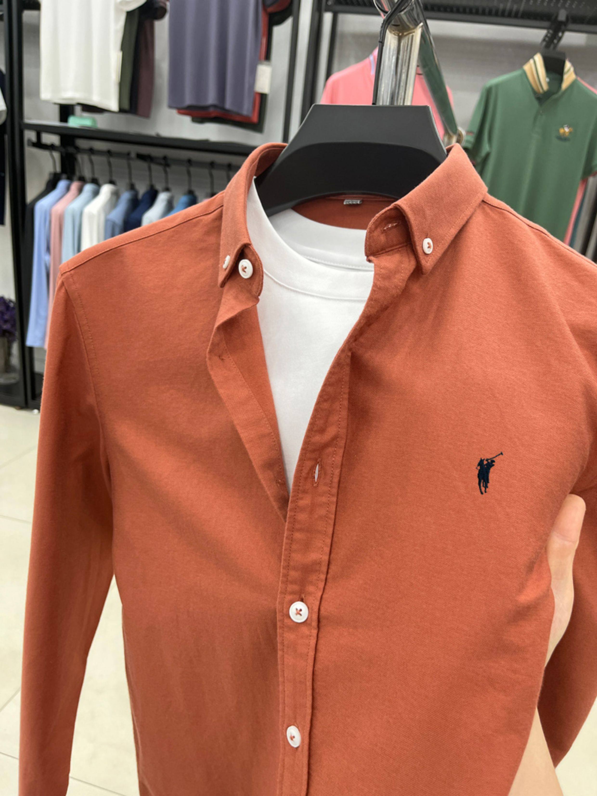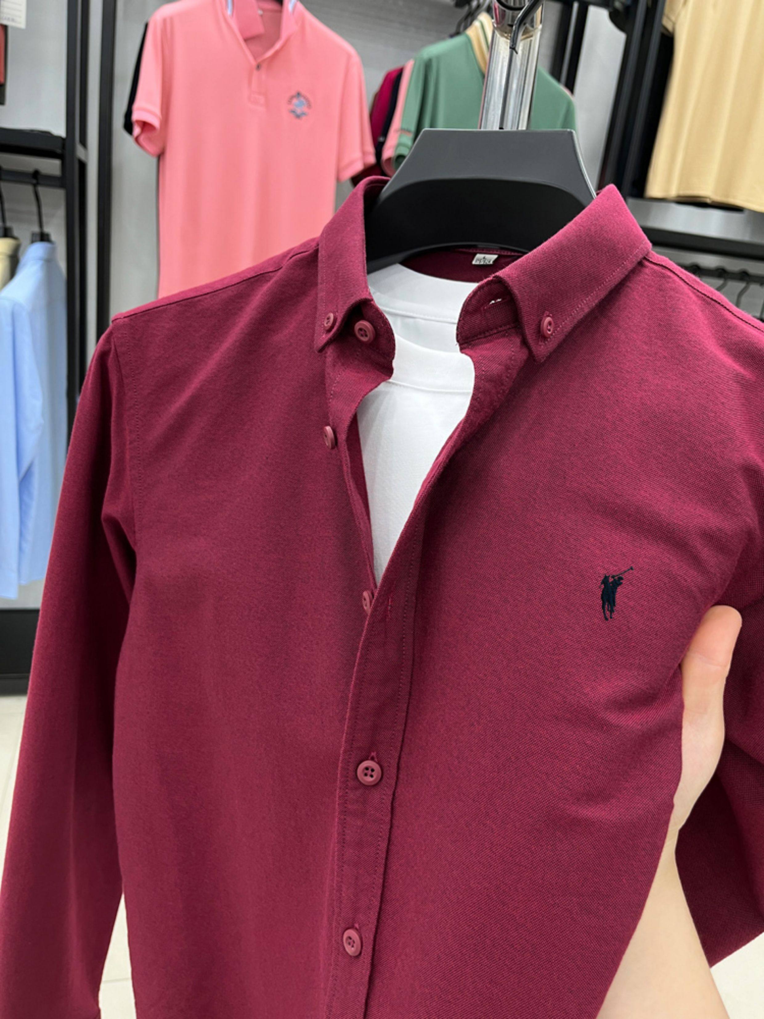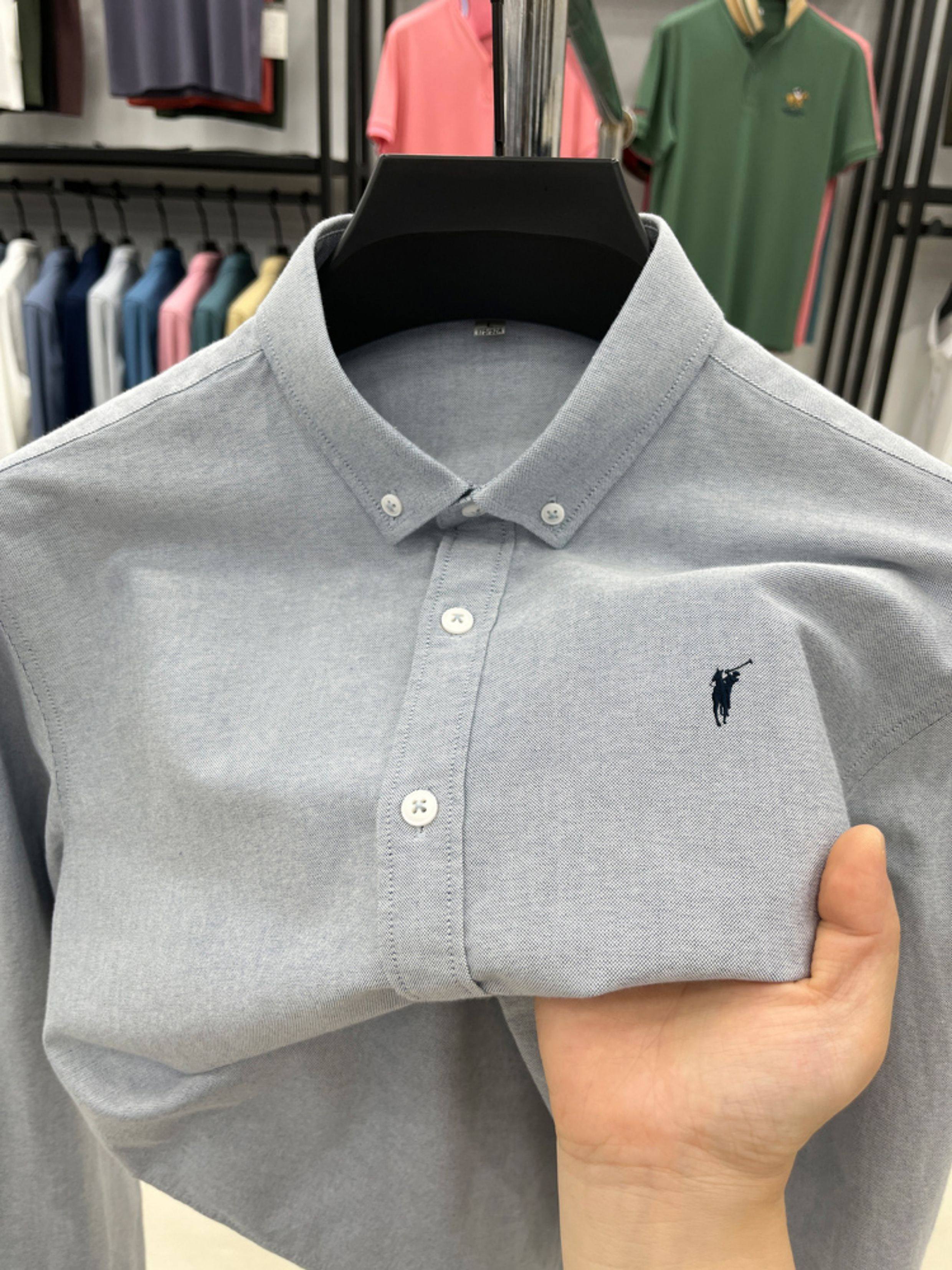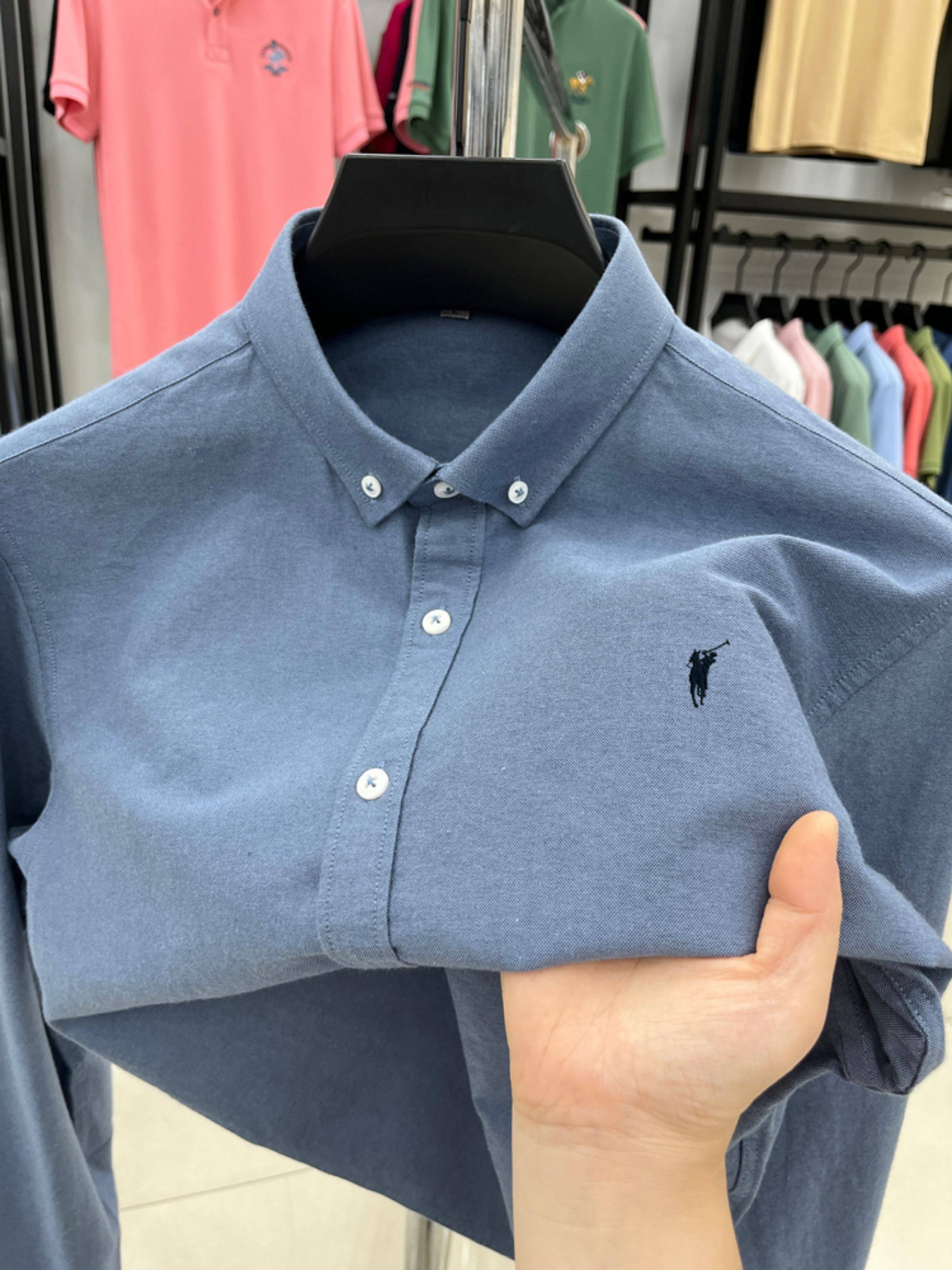 [Outlet Brand Discount] Paul Pure Cotton Long-Sleeve Shirt for Men, Spring and Autumn, Horse Logo Casual Oxford Fabric Shirt