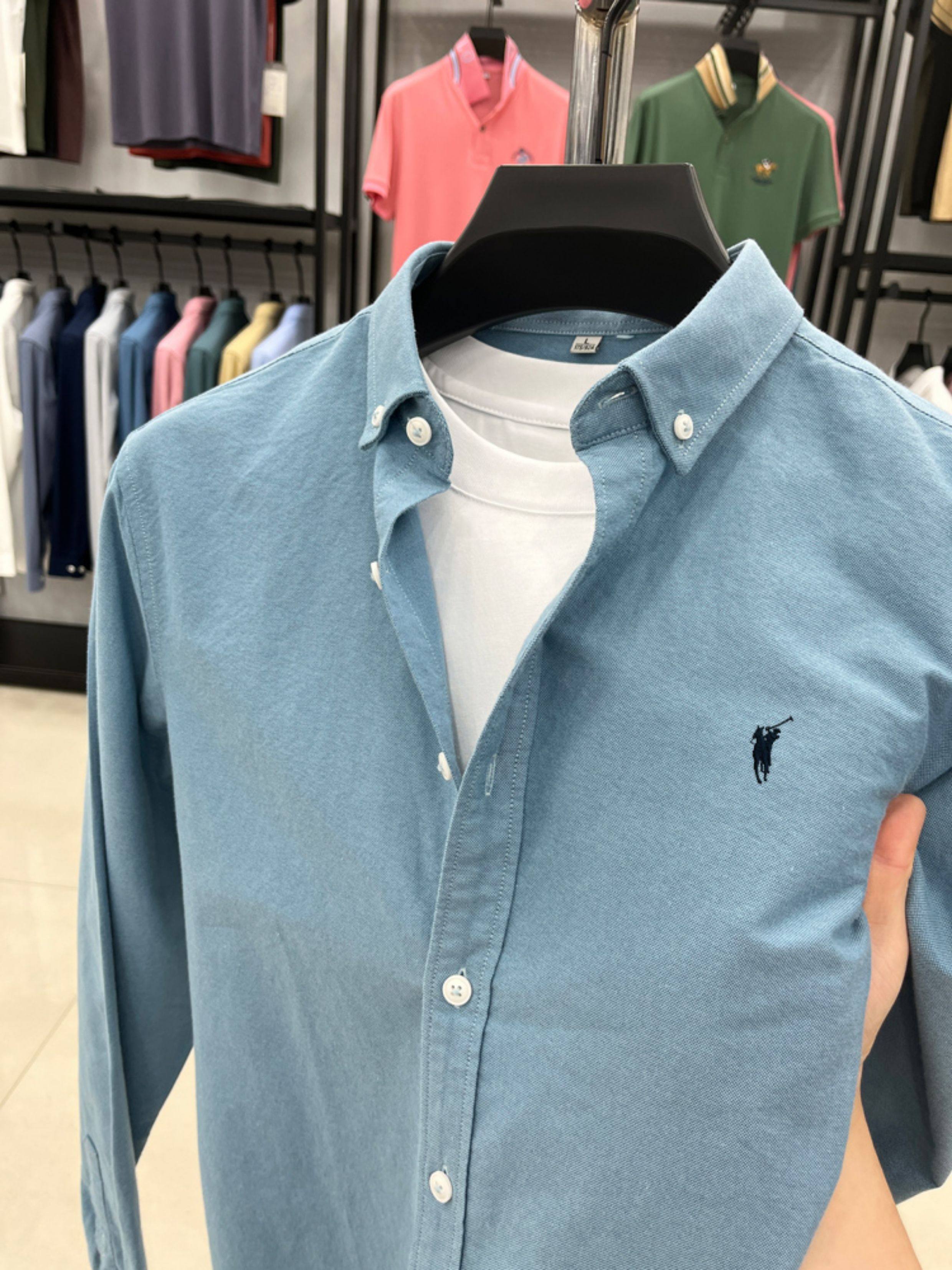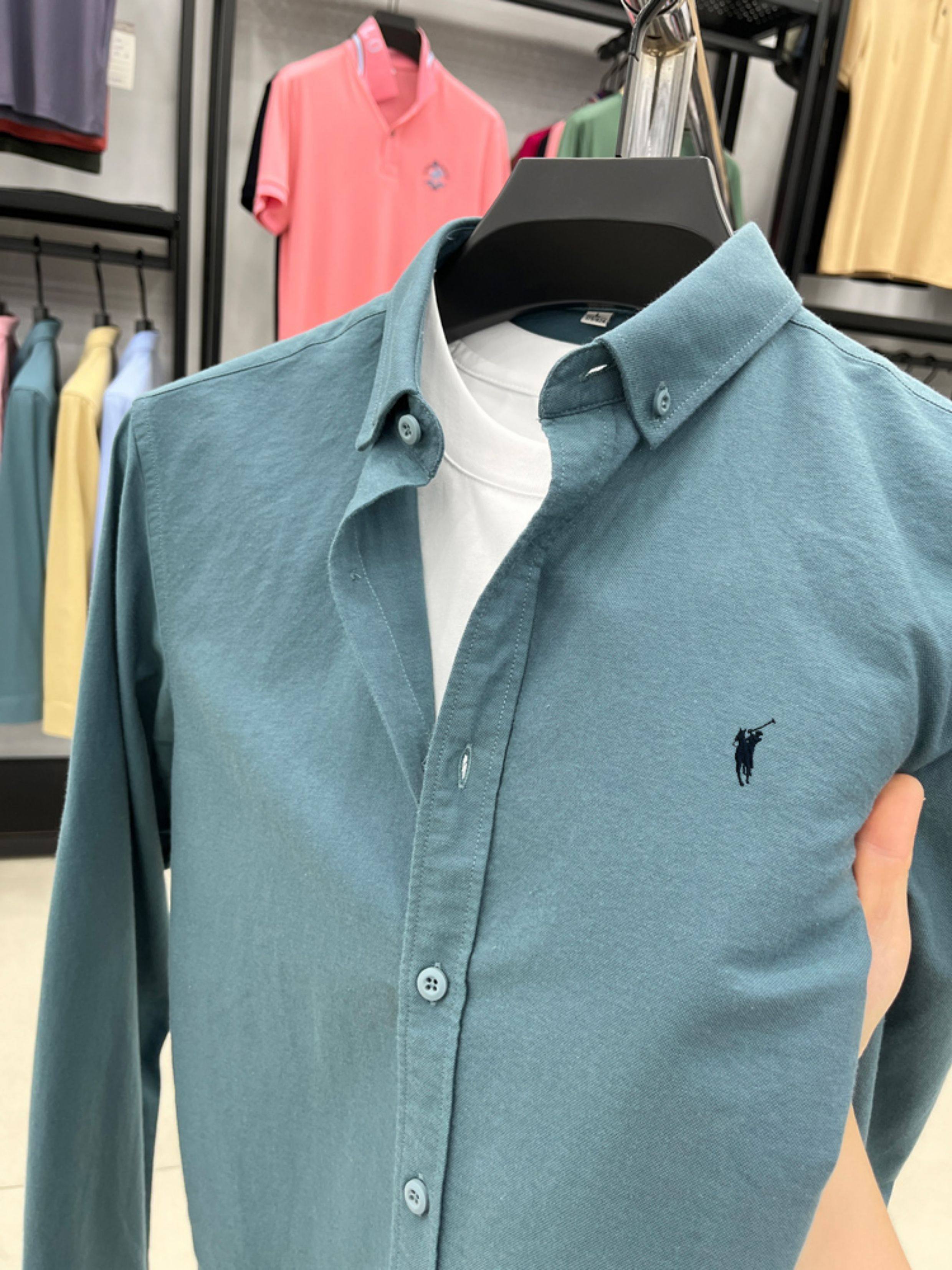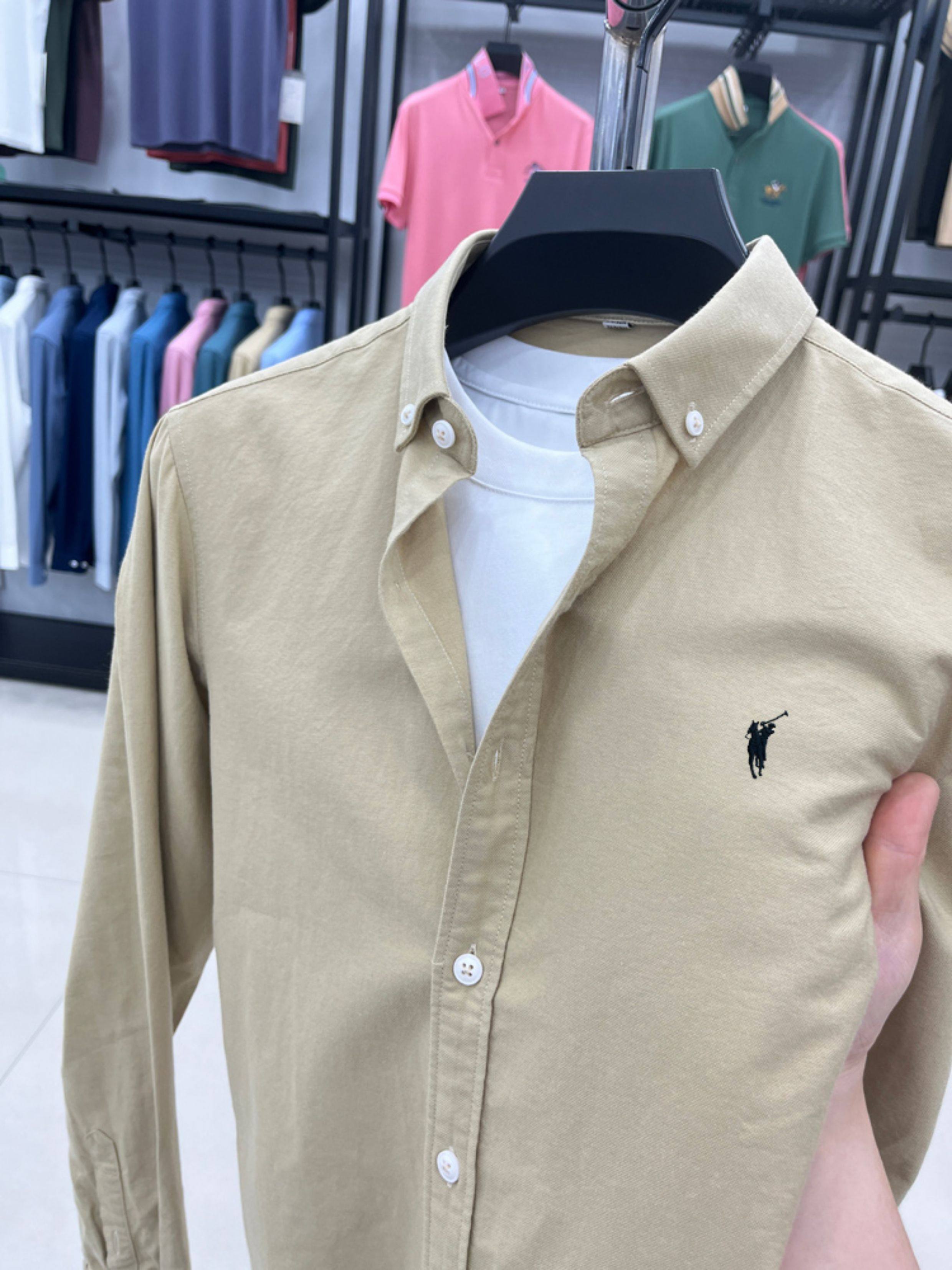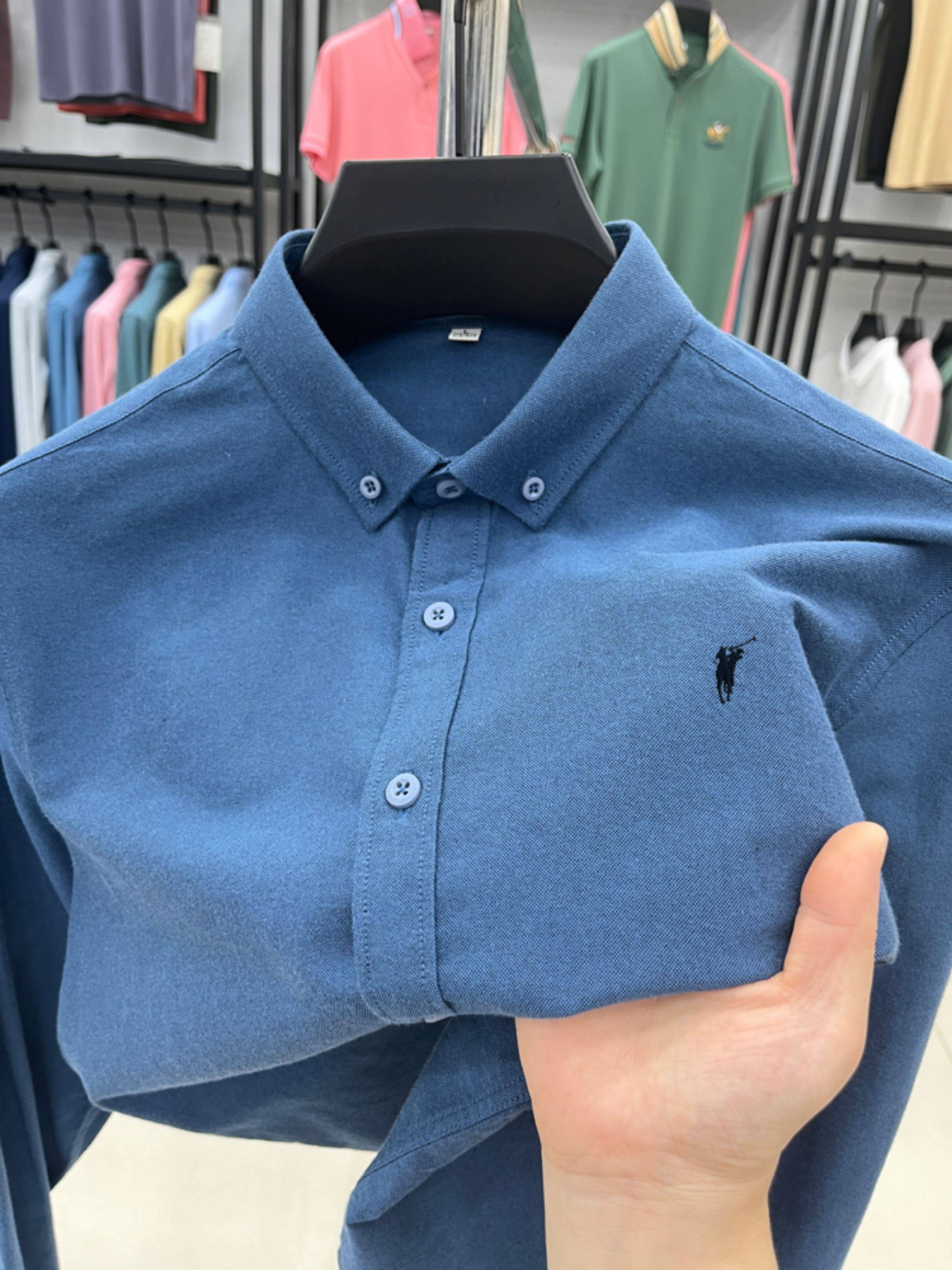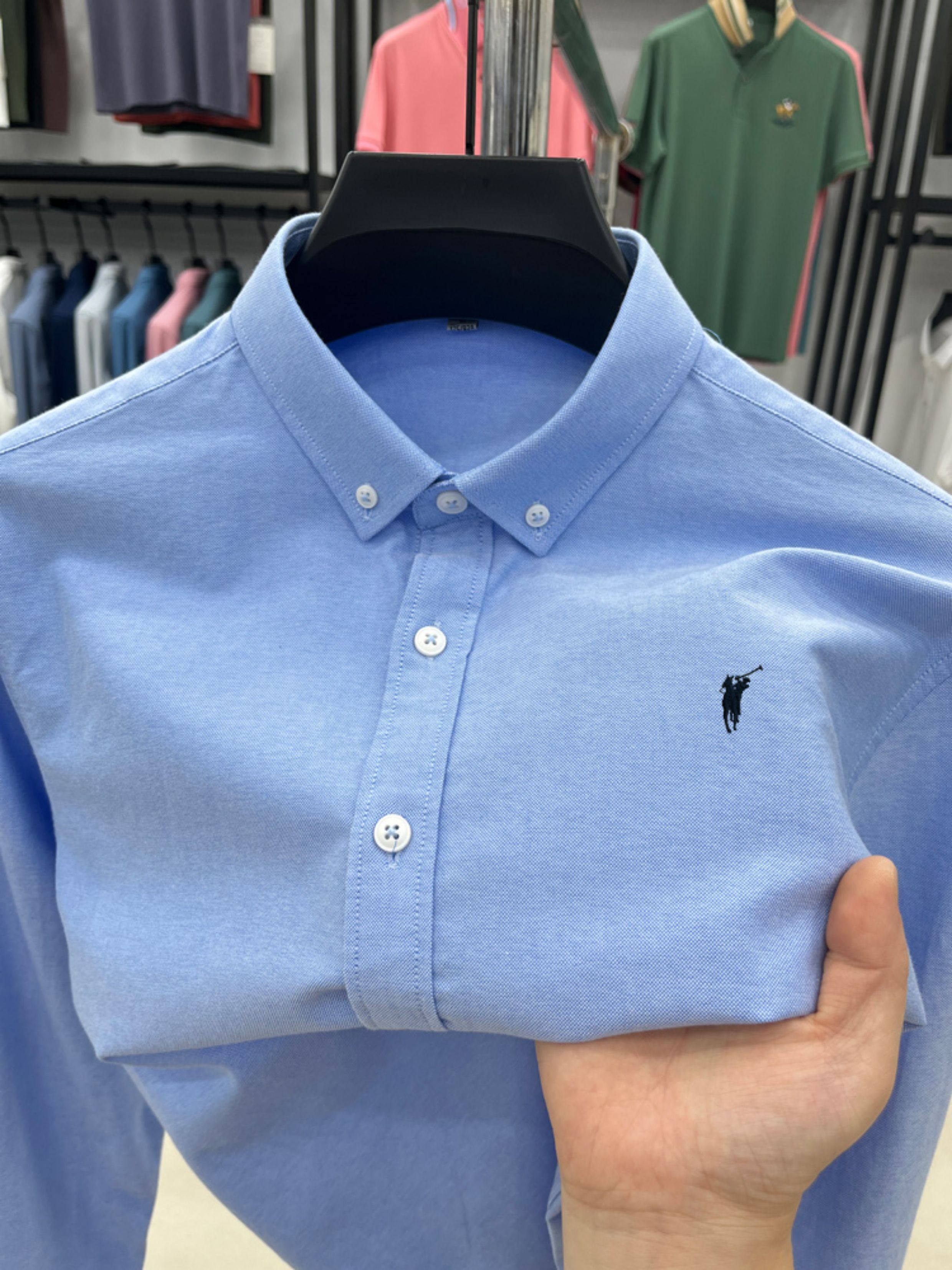 [Outlet Brand Discount] Paul Pure Cotton Long-Sleeve Shirt for Men, Spring and Autumn, Horse Logo Casual Oxford Fabric Shirt