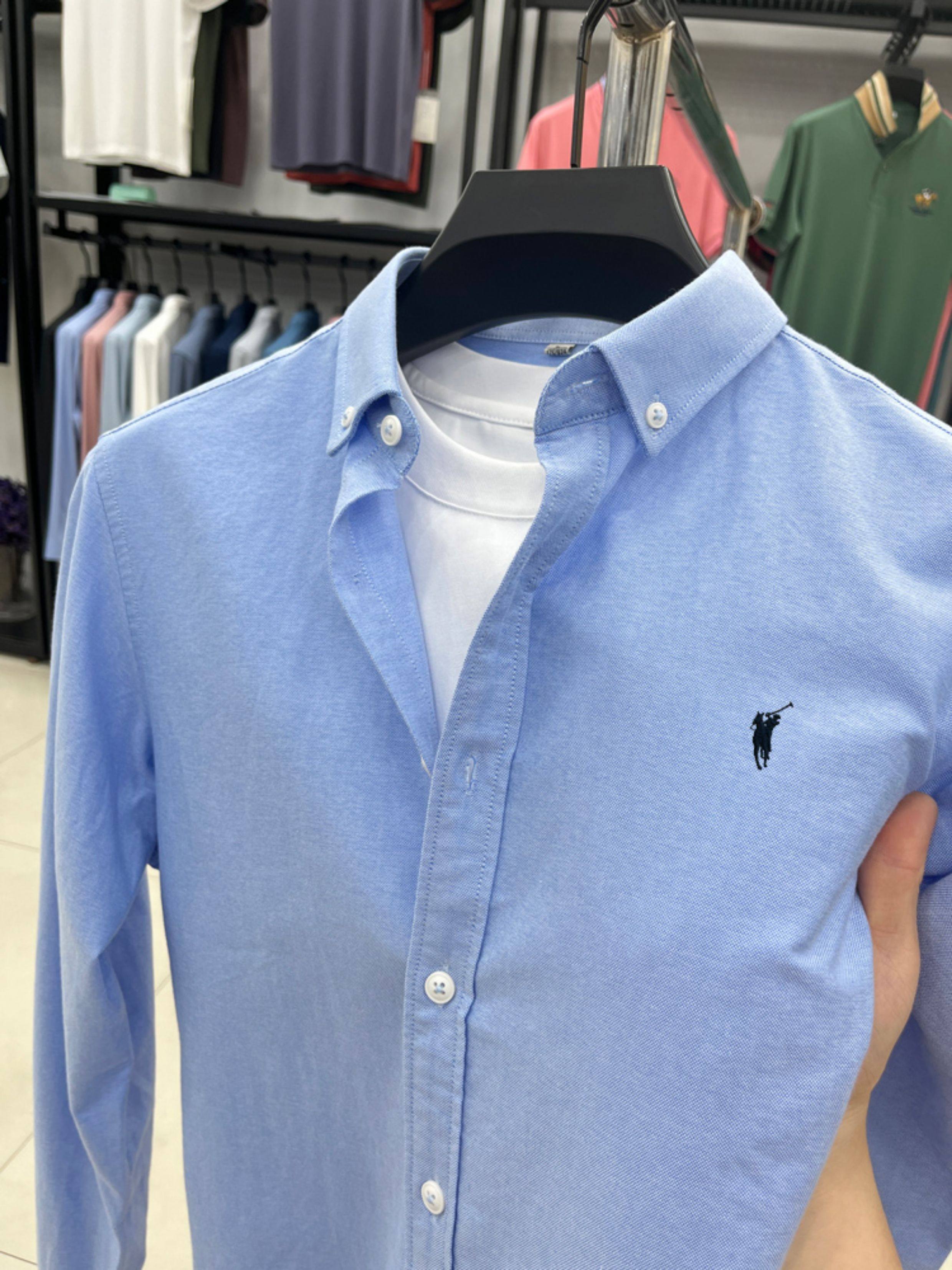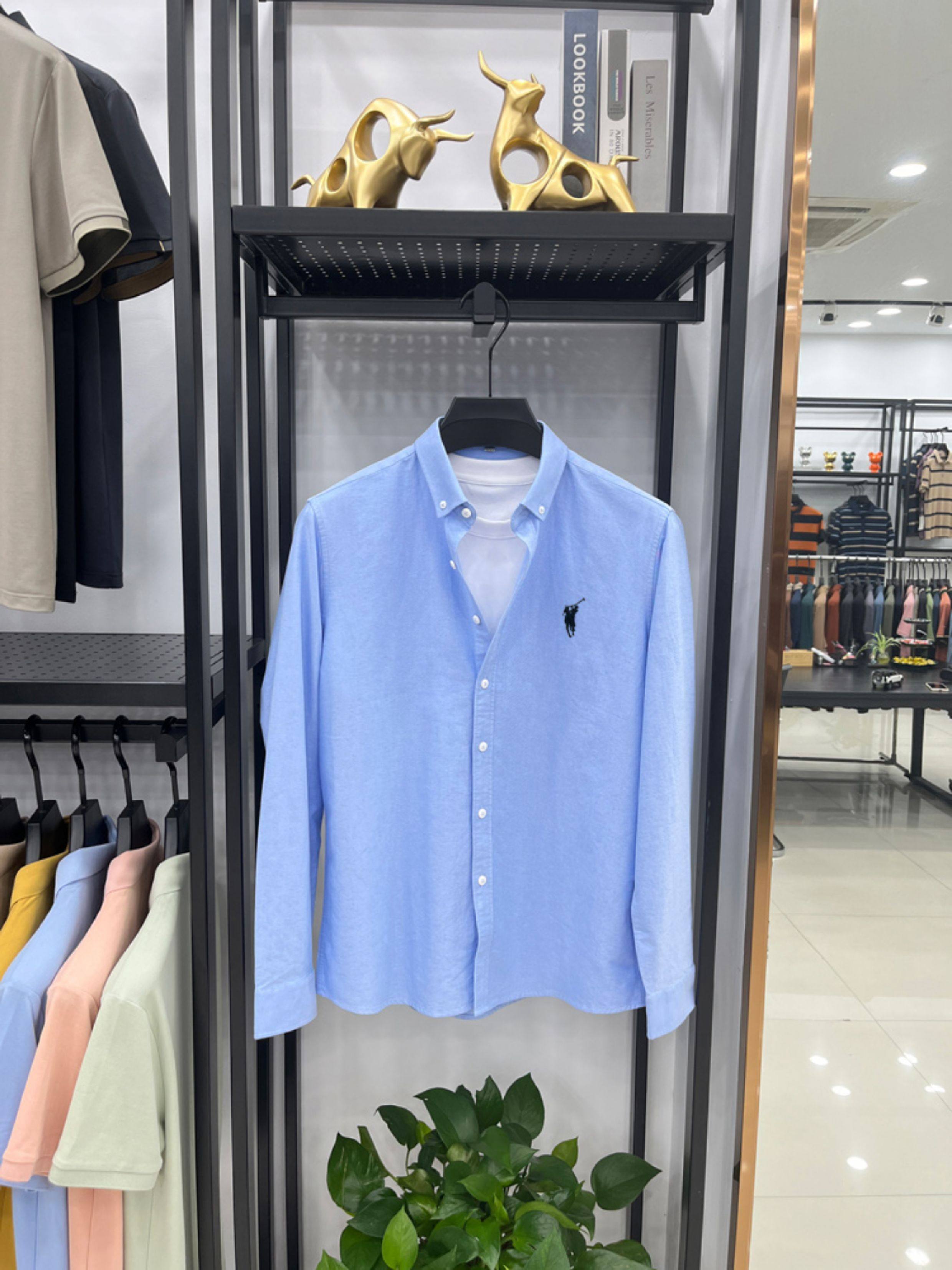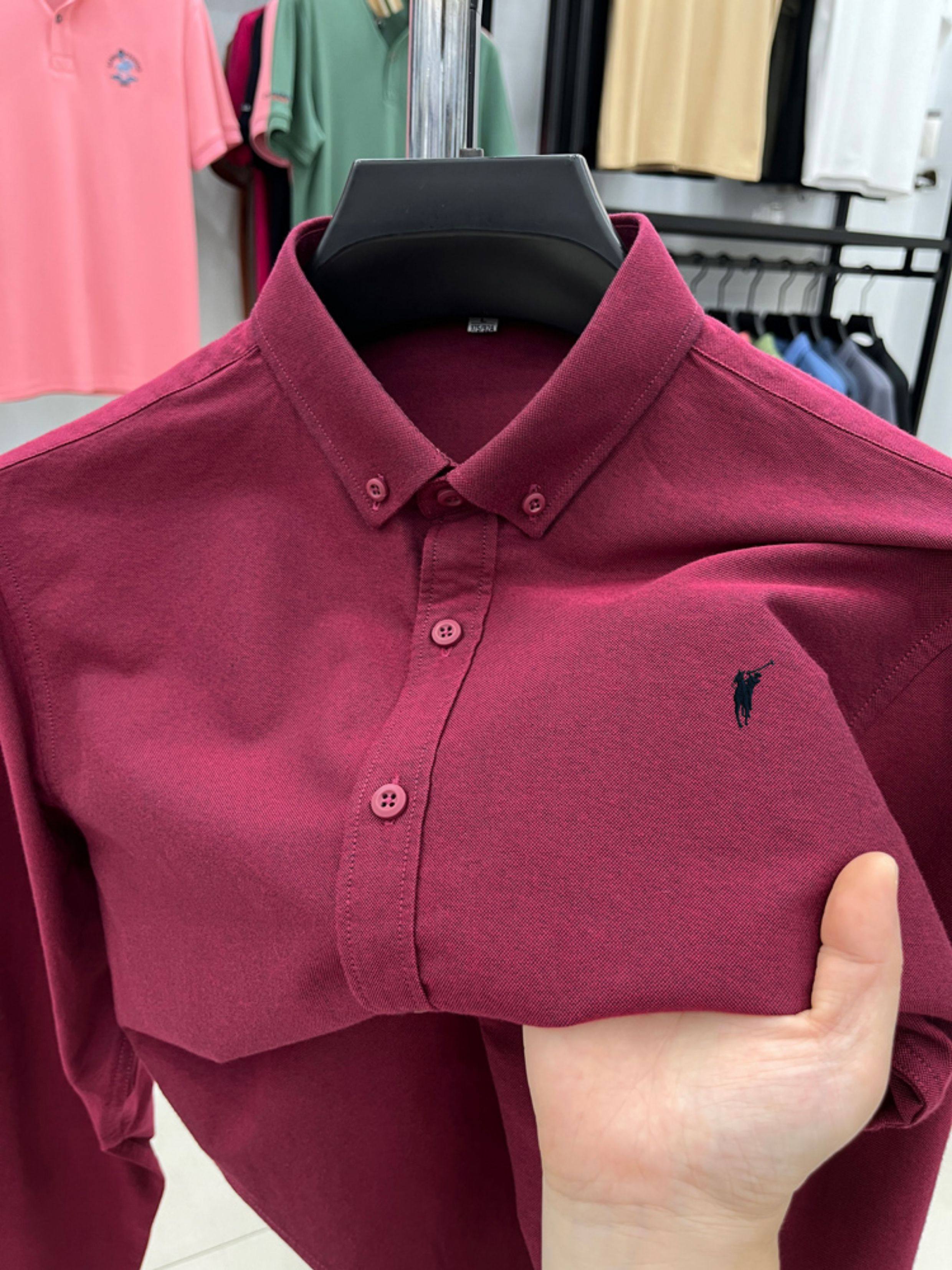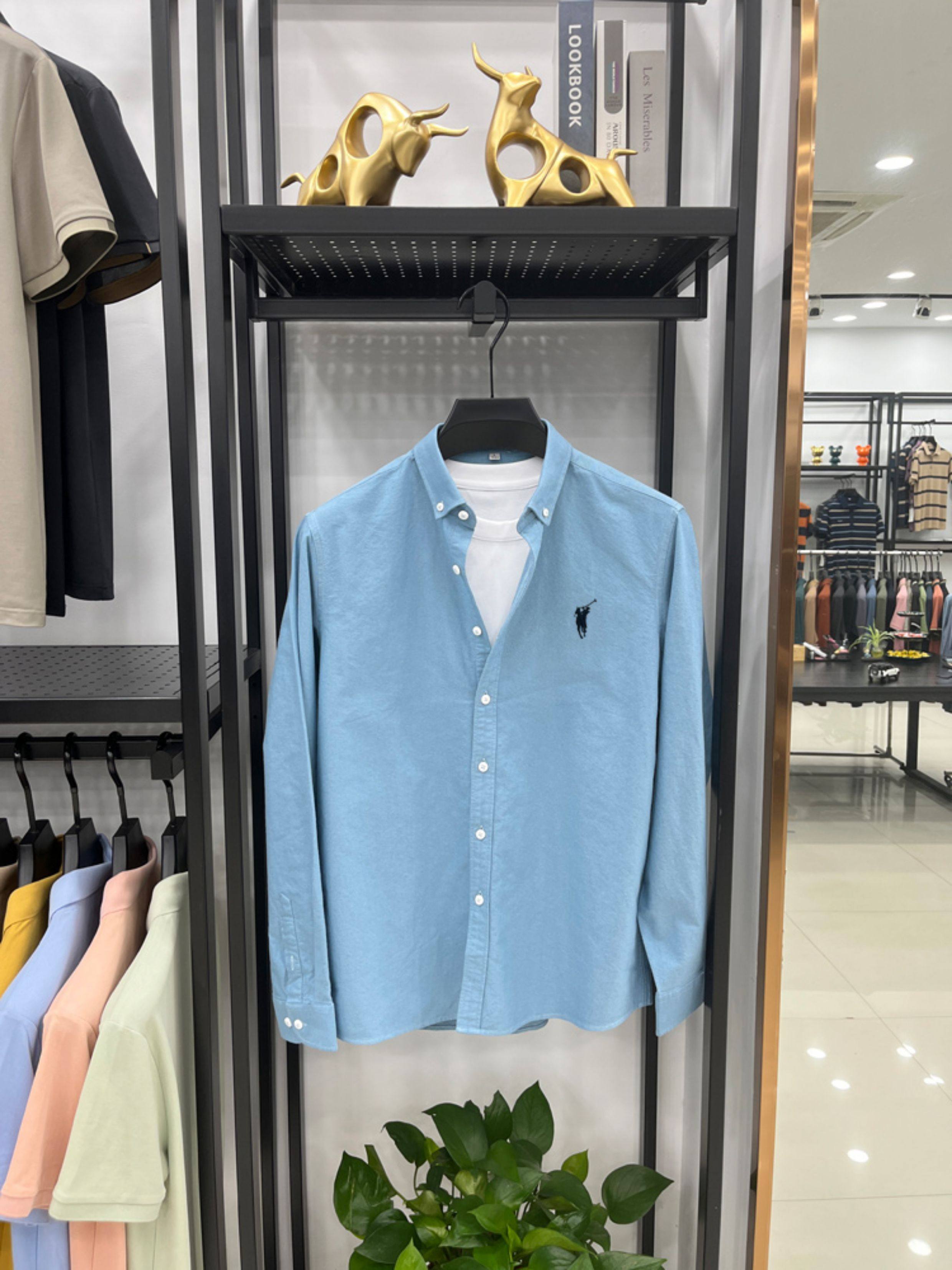 [Outlet Brand Discount] Paul Pure Cotton Long-Sleeve Shirt for Men, Spring and Autumn, Horse Logo Casual Oxford Fabric Shirt