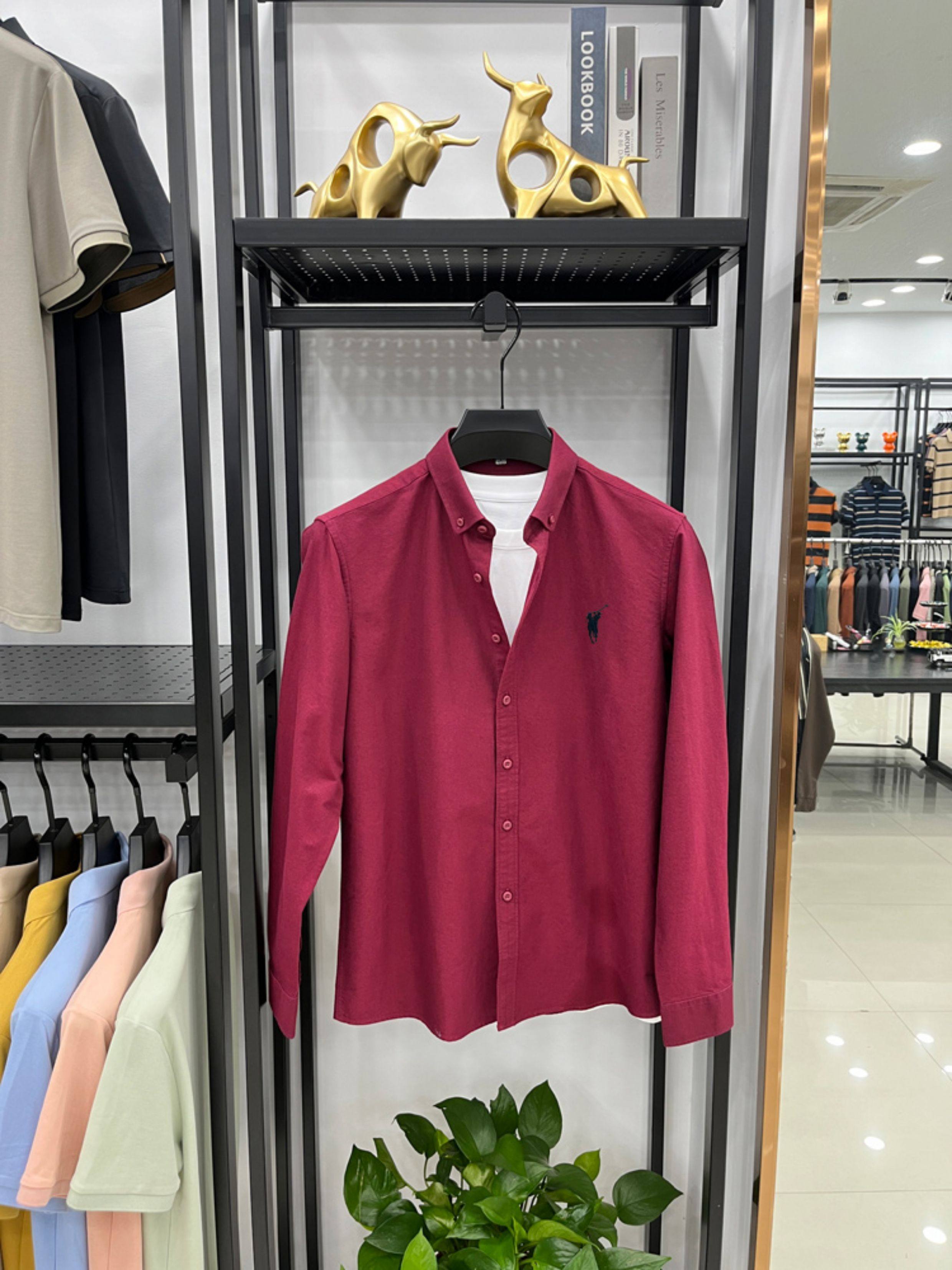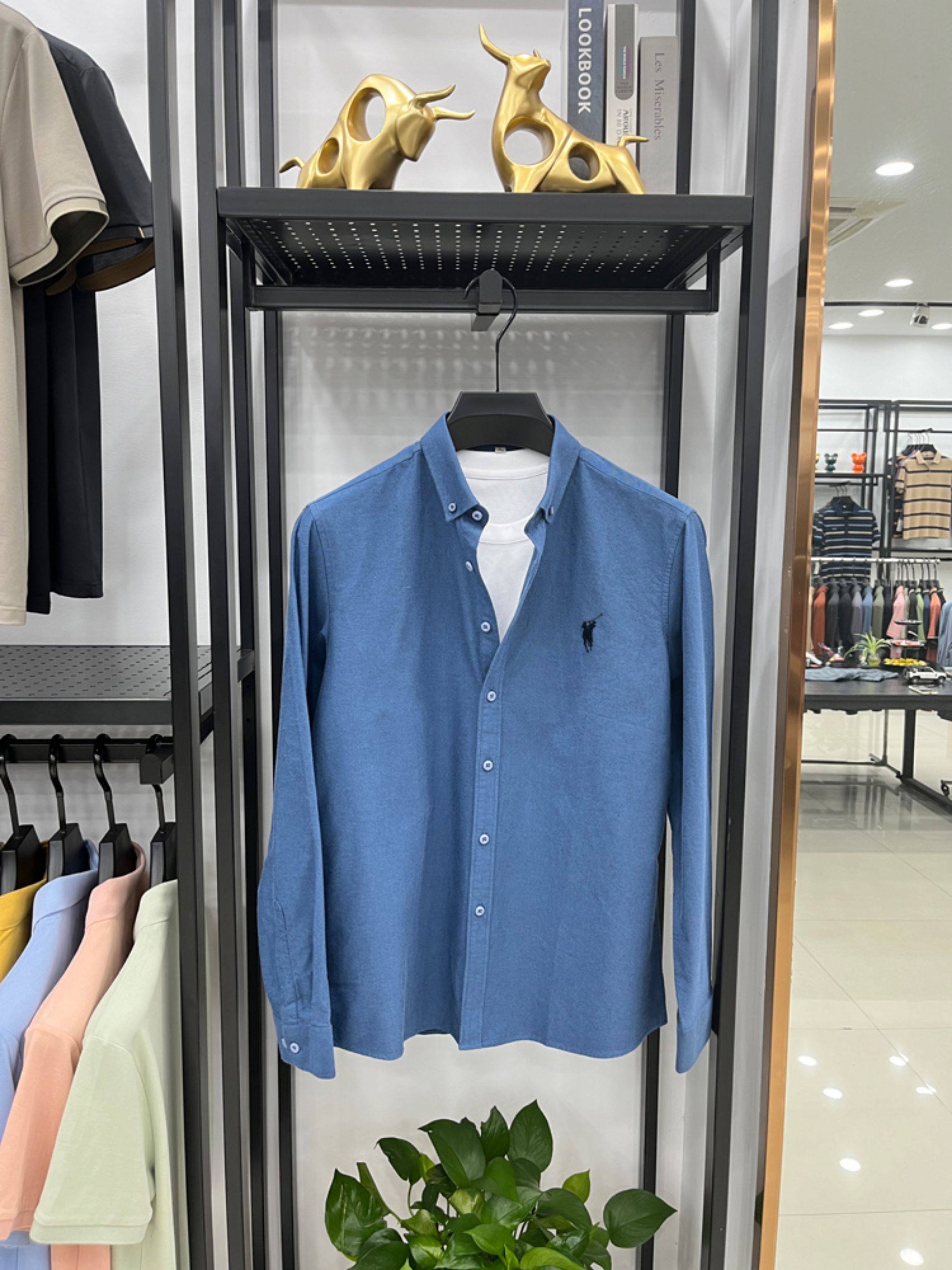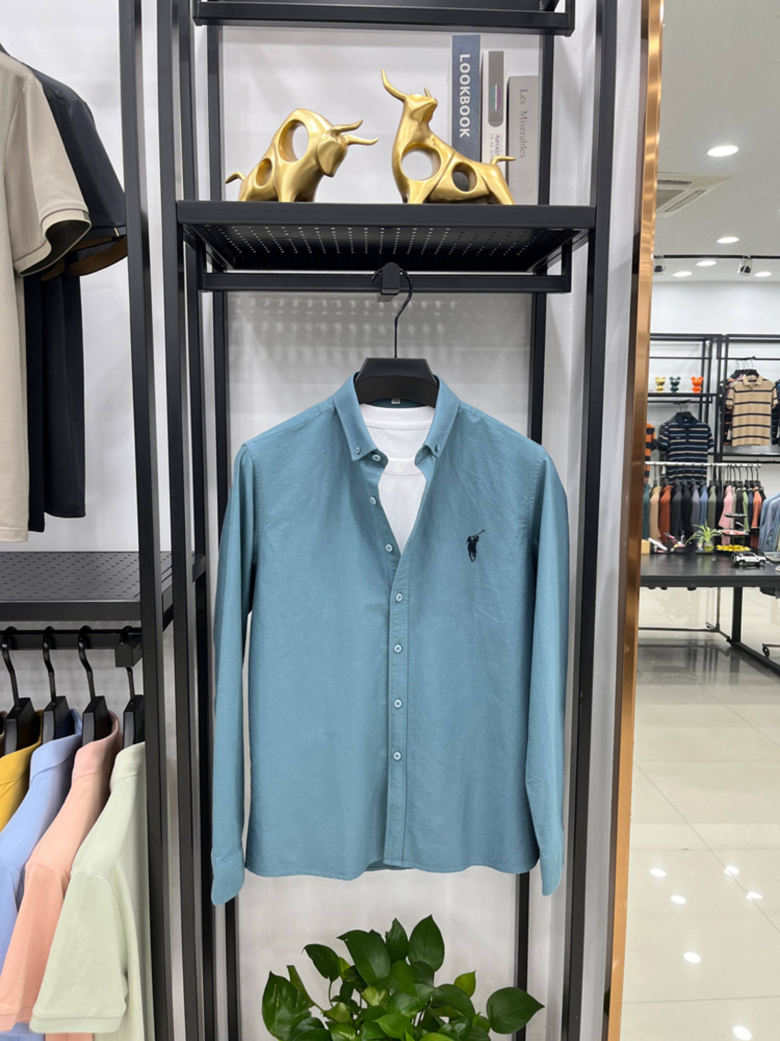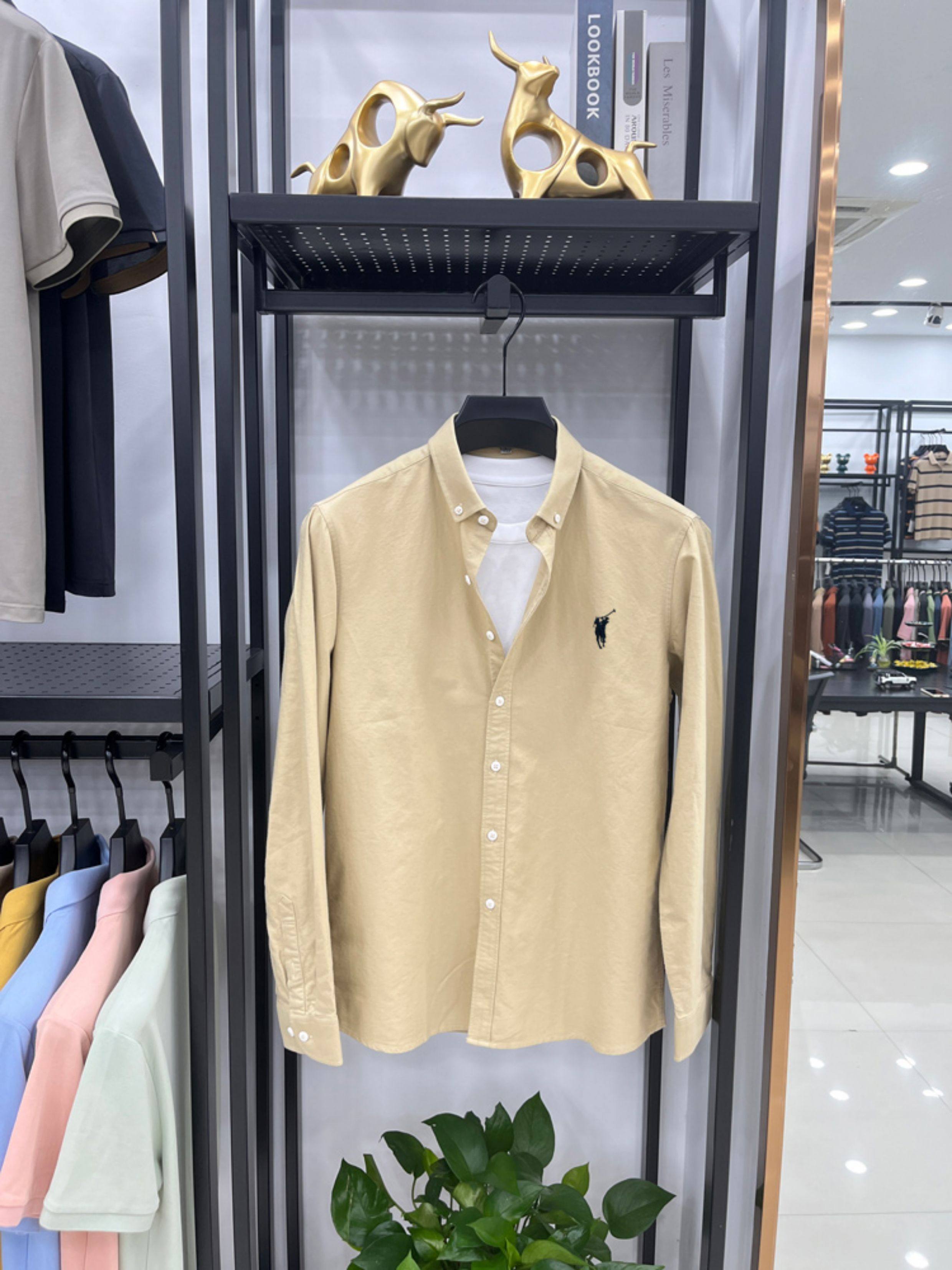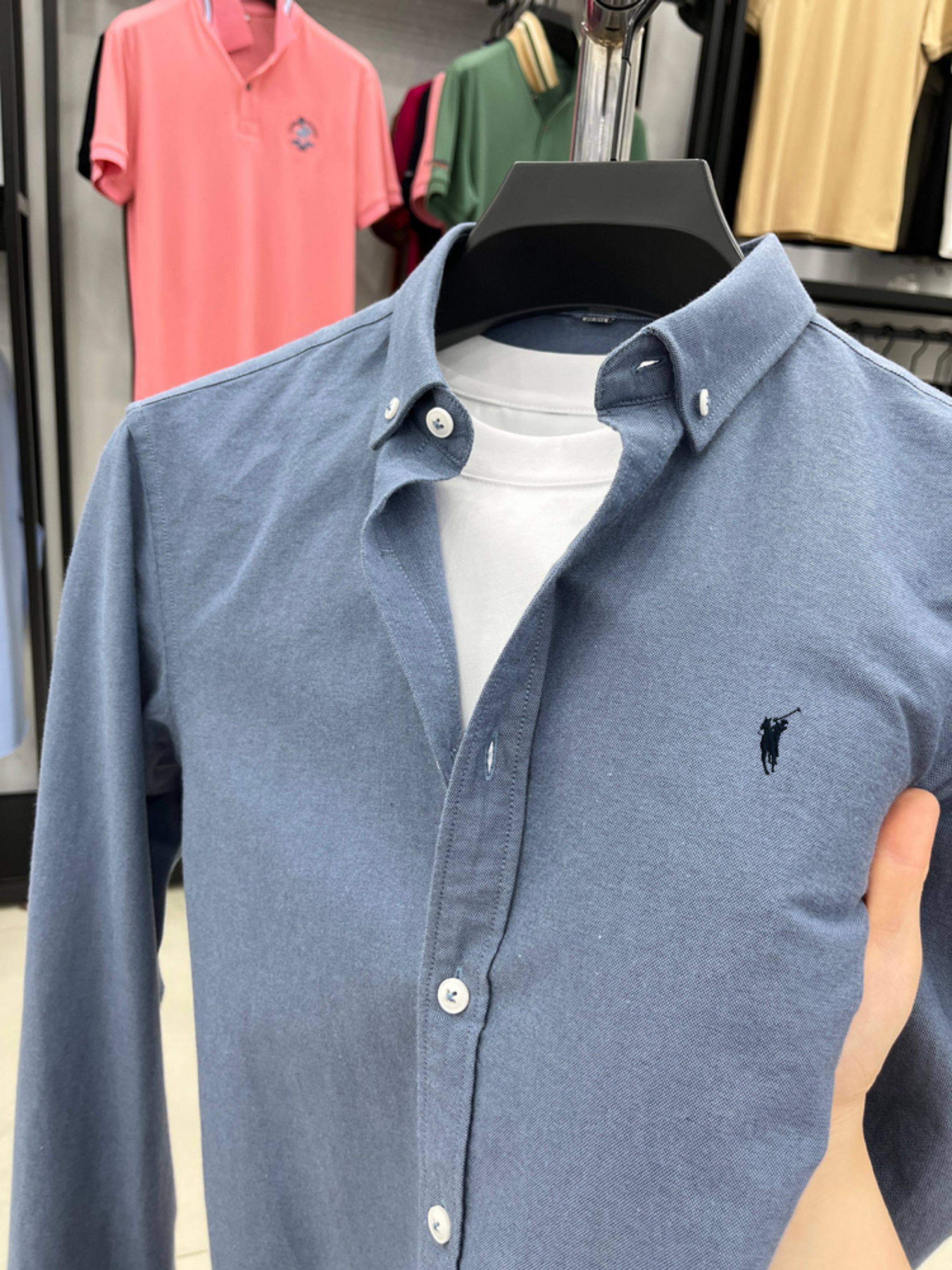 [Outlet Brand Discount] Paul Pure Cotton Long-Sleeve Shirt for Men, Spring and Autumn, Horse Logo Casual Oxford Fabric Shirt
