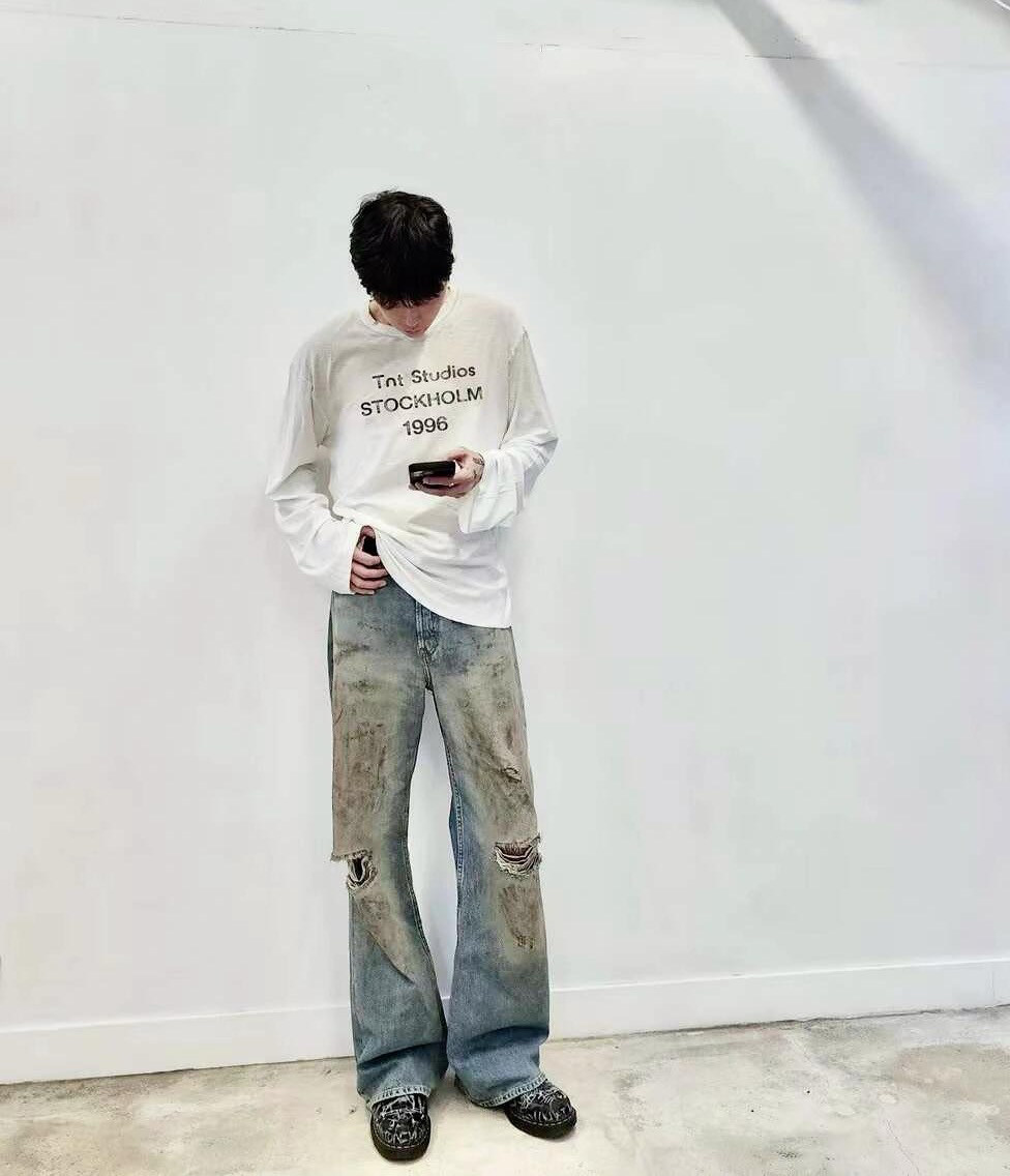 整体工序定织定染+洗水+印花+喷色+手工破坏!