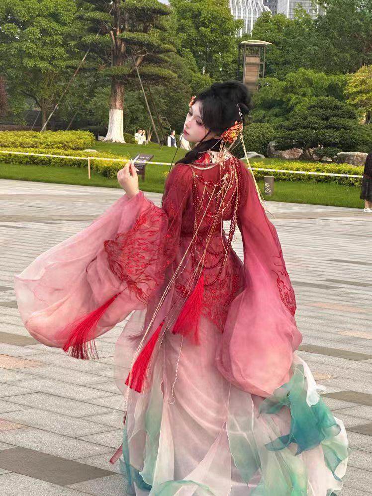 Praying Nine-Tailed Fox Clothing Son Song Oriental Aesthetic Garden Dreams Heavy Industry Embroidered Raccoon Skirt Warring States Robe Han Dynasty